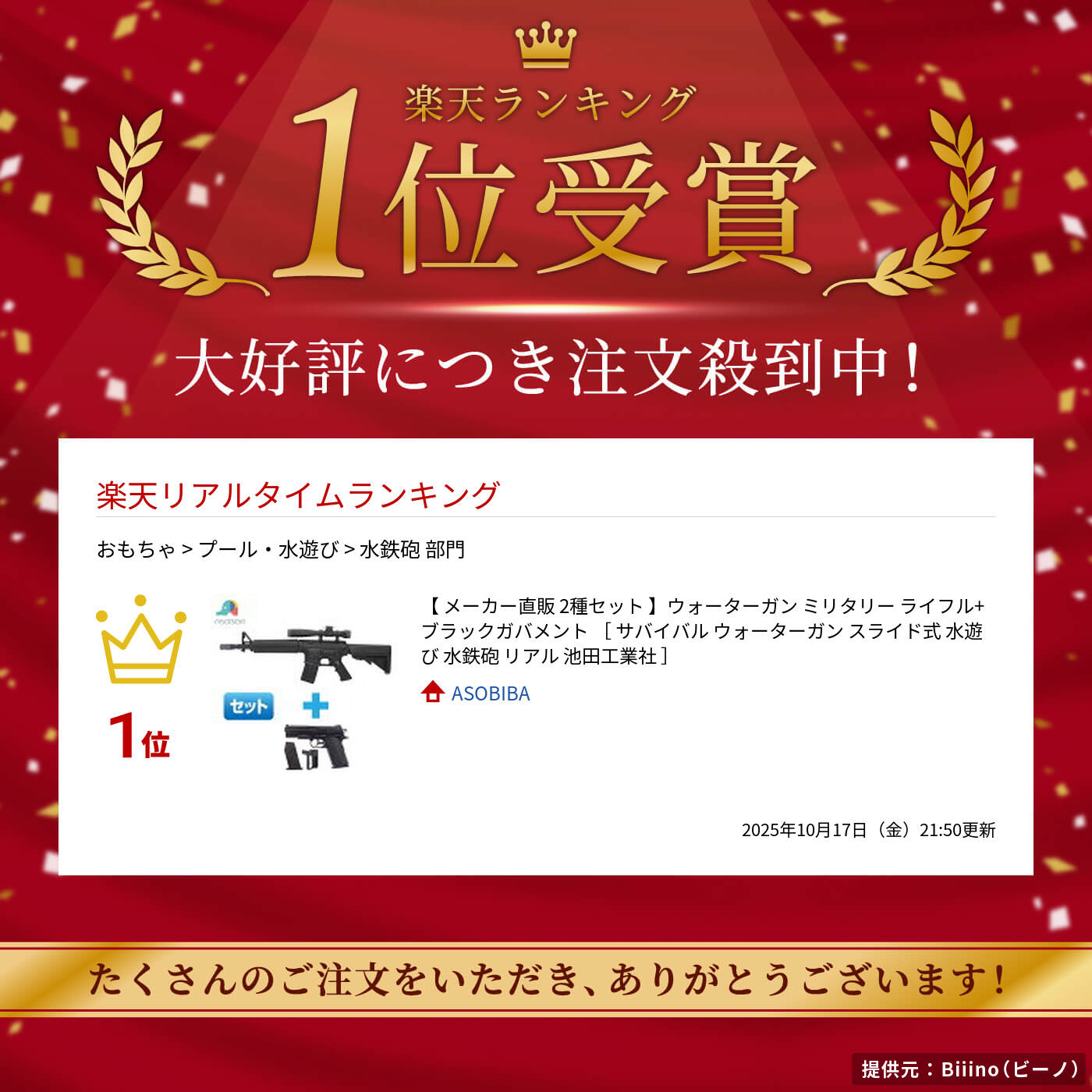 【 メーカー直販 2種セット 】ウォーターガン ミリタリー ライフル+ブラックガバメント [ サバイバル ウォーターガン スライド式 水遊び 水鉄砲 リアル 池田工業社 ]