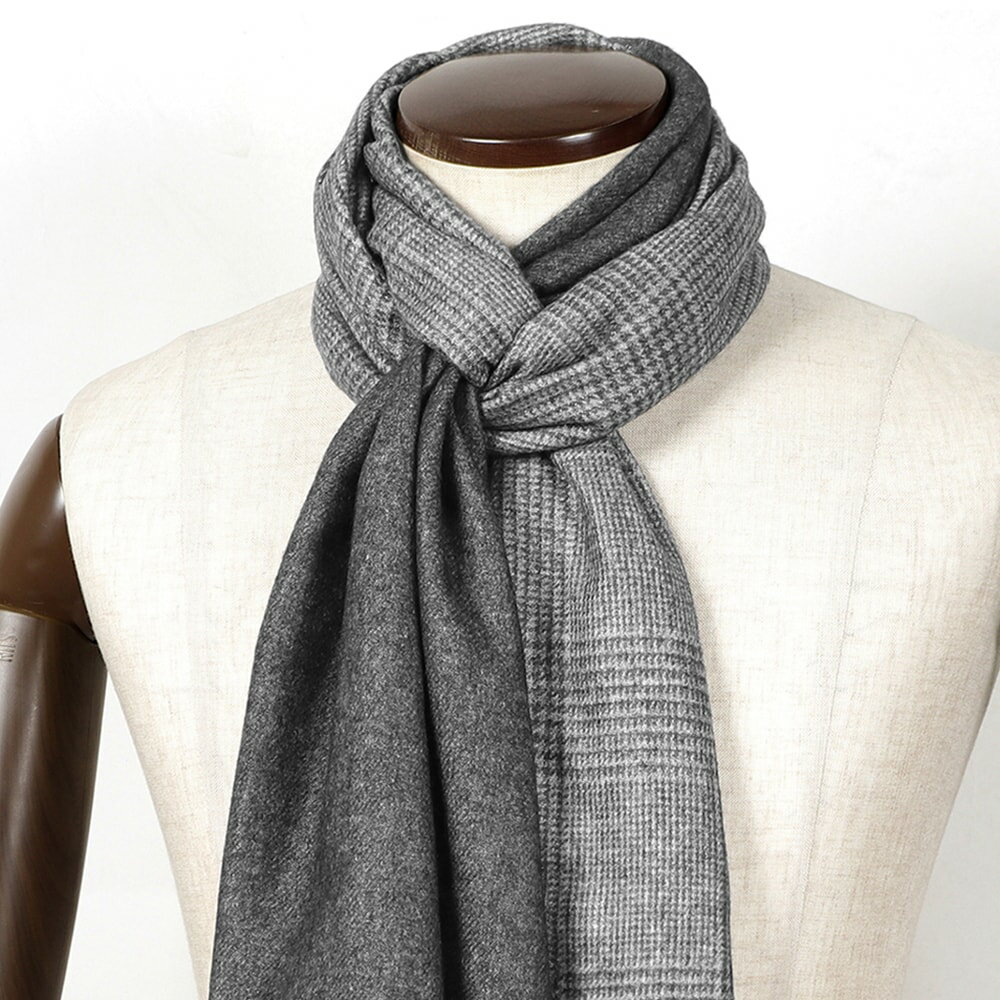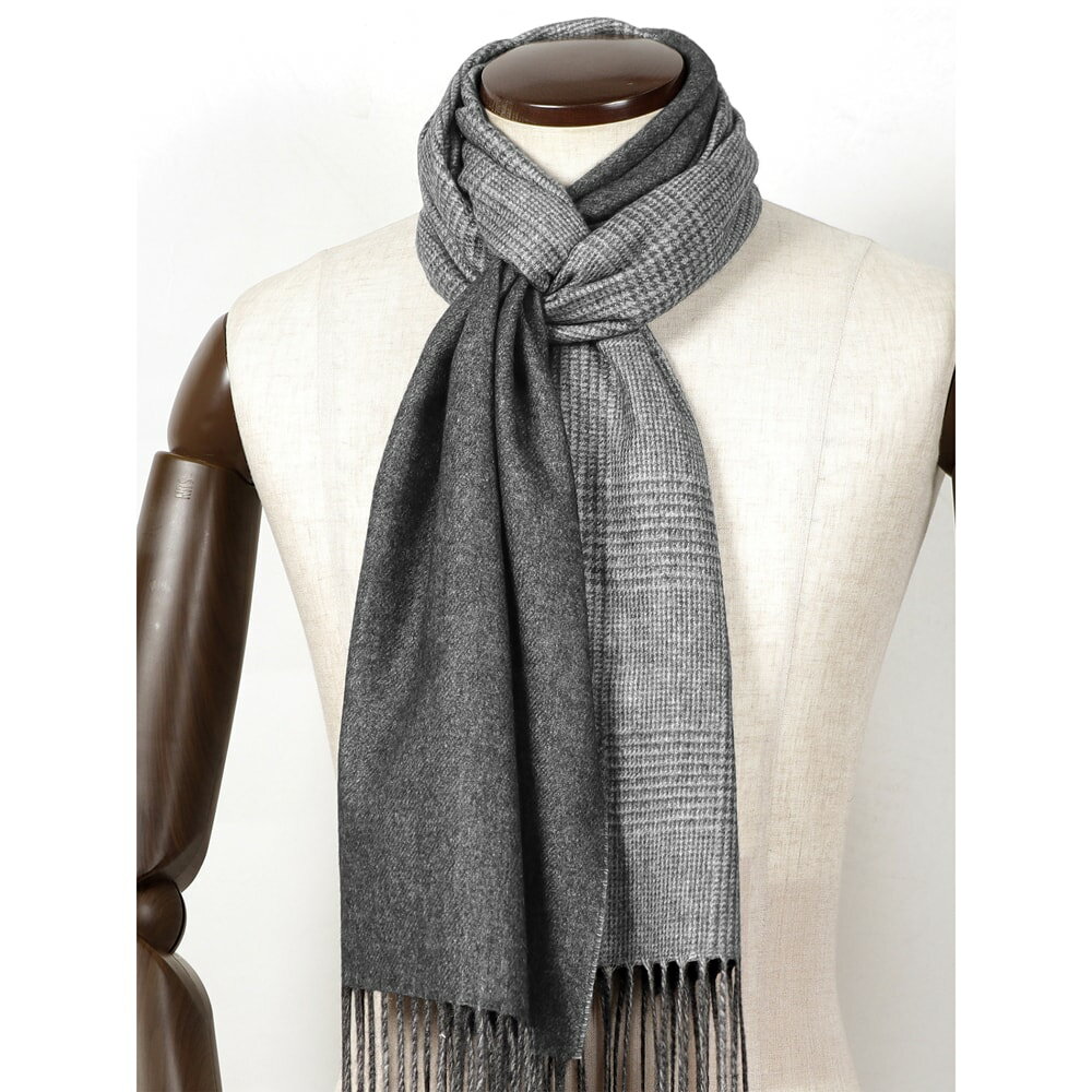 ピアチェンツァ PIACENZA / シルクカシミヤフェルトグレンチェック×無地ダブルフェイスマフラー「83496」(ホワイト×ライトグレー/6)【ラッピング対応】/ ストール メンズ イタリア ビジネス ギフト 英国柄 リバーシブル カシミヤマフラー