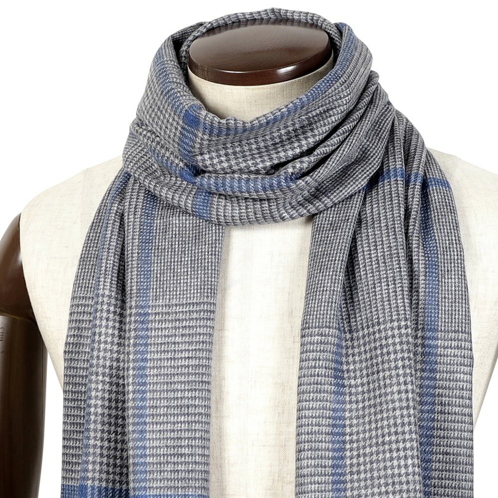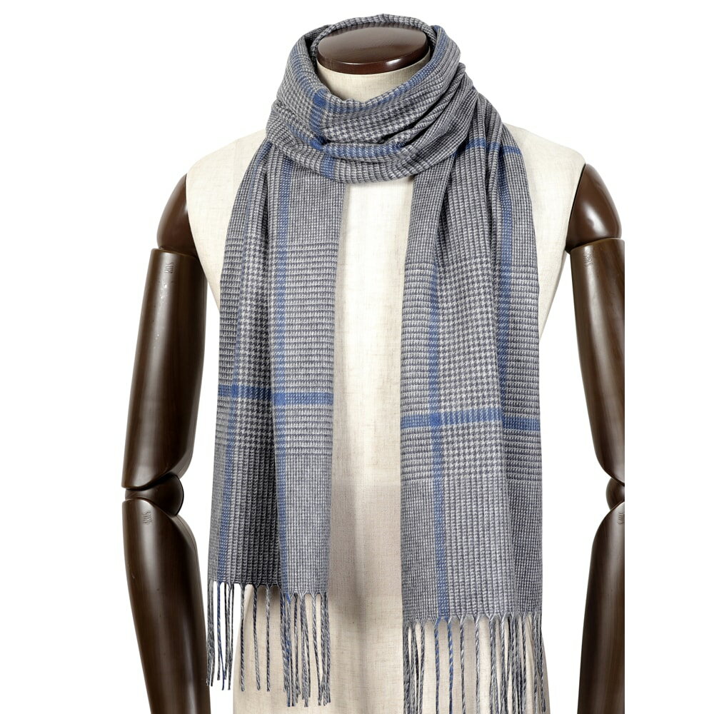ピアチェンツァ PIACENZA / シルクカシミヤフェルトグレンチェックオーバーペーンマフラー「83740」(ライトグレー×ブルーグレー×ブルー/15)【ラッピング対応】/ ストール メンズ イタリア ビジネス ギフト 英国柄 カシミヤマフラー