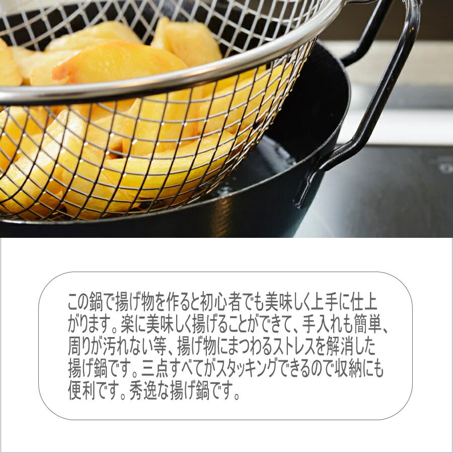 天ぷら鍋 揚げ鍋 ラバーゼ 鉄揚げ鍋セット 22cm 油はね防止ネット揚げかご付 la base 監修 有元葉子 使いやすく美しい お洒落 日本製 | キッチン用品 調理器具 鉄 鍋 鉄なべ 揚げ物 油はね防止 耐久性 天ぷら セット なべ ナベ お鍋 深型 両手鍋 鉄鍋 揚げ物用 ネット