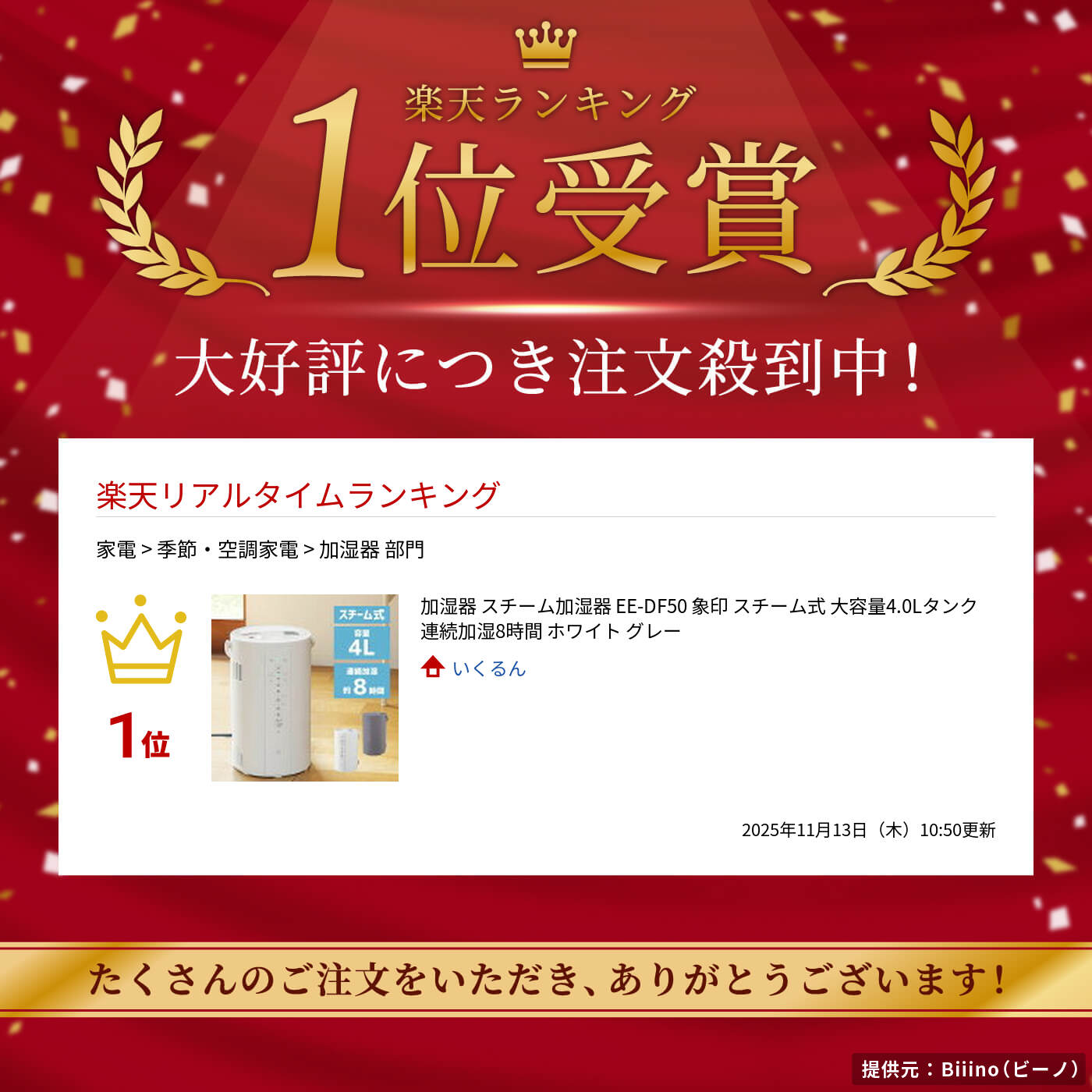 加湿器 スチーム加湿器 EE-DF50 象印 スチーム式 大容量4.0Lタンク 連続加湿8時間 ホワイト グレー