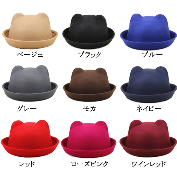 子供用 ボーラーハット 帽子 キッズハット フェルトハット レディースハット 猫耳 ネコ耳 メンズ レディース フェルト帽 親子帽子 FELT HAT 324