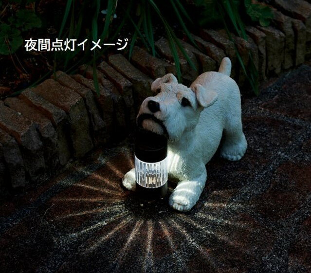 犬たちがライトをくわえている姿がとっても可愛い♪ 商品特徴 ・暗くなると自動で灯りがON ・日中の日光の灯りで自動充電してくれます ・ソーラーライトは災害などの緊急時にも役に立つと注目されています 商品詳細 ■材質 (本体)レジン/(ライト部)ABS樹脂 ■サイズ (幅✕奥行✕高さ(cm)):W16cm L32.5cm H23.5cm ・充電式単4電池1本内蔵 (テスト用電池となりますので、寿命は約3~4か月となっております。) ・保証書付き ・光センサー付き