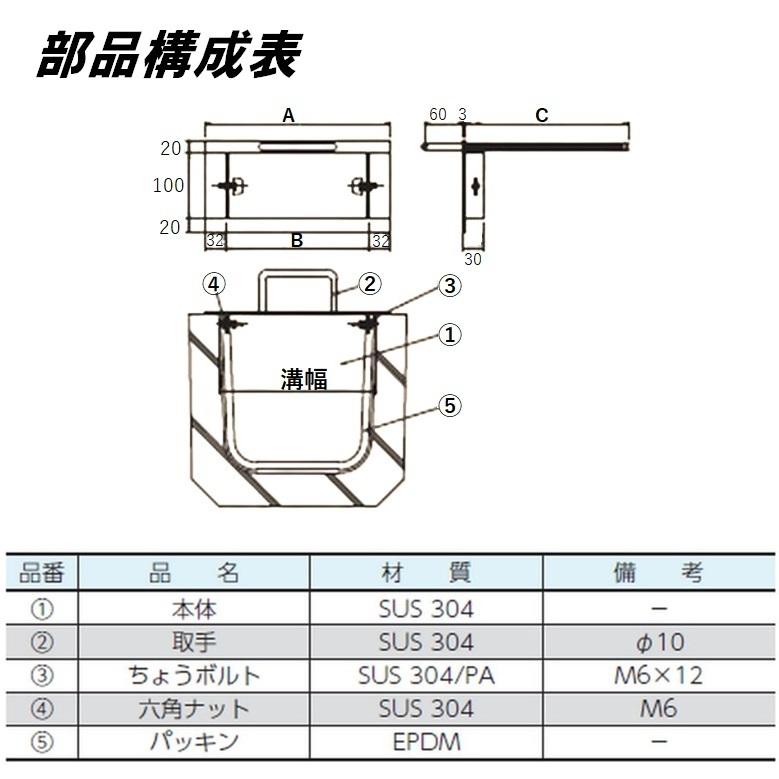 U字溝用 止水板 溝幅300mm用 ステンレス製 パッキン付き グレーチング