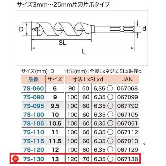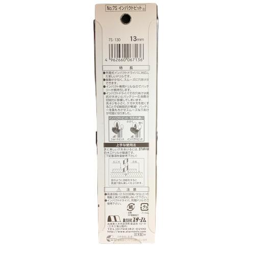 木工用 インパクトビット ショート 13mm スターエム 7S-130 六角軸 6.35mm