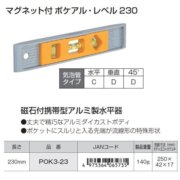 タジマ マグネット付 ポケアル レベル 230mm POK3-23 水平器