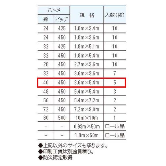 【特徴】 ●ポリエステル系に塩ビコーティングを施した防炎シートです。 ●防炎・防音効果に優れ、工事現場・資材の養生に最適です。 ●工場・建築・土木・農業・水産などあらゆる野積み用カバーに適しています。 ●防炎シートは小さな火源に接しても容易に燃え上がらず、もし着火して際でも限りなく燃え広がりません。 ●防炎認定取得商品です。 【用途】 ●建築工事現場の養生・野積みカバー・防雨, 防砂,防風カーテンなどに使用 ●災害時に様々な用途に使用できます 【商品情報】 ●寸法:3.6m×5.4m(3600mm×5400mm) ●材質:PVCポリエステル ●ハトメ数:40・ピッチ:450 防炎シート取扱い一覧↓全て最安値挑戦中です! サイズ 枚数 1.8m×3.6m 10枚 1枚 1.8m×5.4m 10枚 1枚 3.6m×5.4m 5枚 1枚 5.4m×7.2m 2枚 1枚 10m×10m 1枚 0.93m×50m(ロール) 1巻 0.935m×50m(ロール) 1巻 1800mm×50m(ロール) 1巻 1870mm×50m(ロール) 1巻