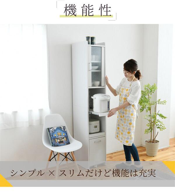 ■商品説明 隙間タイプでスリム設計のキッチン収納。高さ違い3タイプのシリーズ。高さ180タイプは、ファミリーでの使用に適したフルサイズ。家電が収納できるスライドテーブル2つに加えて、食器類の収納に便利な扉収納付き。扉の開く向きはお好みで設定可能です。ペットボトルも収納可能な深めの引出しもあります。 ■本体サイズ [外寸]幅32.5×奥行42.5×高さ181cm ■その他サイズ [内寸] (オープン部上)幅29×奥行37×高さ5cm (スライド部上)幅26×奥行33×高さ32cm (スライド部下)幅26×奥行33×高さ30cm (スライド引き幅)上:34 下:25cm (扉内)幅26.5×奥行33.5×高さ54cm (引出し)幅24×奥行33.5×高さ18(有効35.5)cm (可動棚)幅28.5×奥行33×厚み1.8cm(3.2cmピッチ11穴) ■材質 (本体)プリント化粧繊維板 (前板・スライド板)塩ビ化粧繊維板 (ガラス)5mm厚強化ミストガラス ■収納量・耐荷重 [天板]約5kg以下 [引出し]約7kg以下 [棚]約5kg以下 [スライド棚]約5kg以下 ■備考 ・可動棚:3枚 ・合計1500W2口コンセント付(コード長さ194cm) ・キャスター1個 ・ガラス扉は左右どちら開きも取り付け可能 ■生産国 中国 ■組立時間(目安)(大人2人) お客様組立(45分) 【キッチン 隙間収納 シリーズ】 ■FKC-0531-WHDB 隙間ミニキッチン H120 ホワイト/ダークブラウン ■FKC-0531-WH 隙間ミニキッチン H120 ホワイト ■FKC-0532-WHDB 隙間ミニキッチン H160 ホワイト/ダークブラウン ■FKC-0532-WH 隙間ミニキッチン H160 ホワイト ■FKC-0533-WHDB 隙間ミニキッチン H180 ホワイト/ダークブラウン ■FKC-0533-WH 隙間ミニキッチン H180 ホワイト ■FKC-0645-WHDB 隙間ミニキッチン H120 扉付き ホワイト/ダークブラウン ■FKC-0645-WH 隙間ミニキッチン H120 扉付き ホワイト ■FKC-1532-WH 隙間ミニキッチン H160 扉付き ホワイト ■FKC-1532-WHDB 隙間ミニキッチン H160 扉付き ホワイト/ダークブラウン ■FKC-1533-WH 隙間ミニキッチン H180 扉付き ホワイト ■FKC-1533-WHDB 隙間ミニキッチン H180 扉付き ホワイト/ダークブラウン ※他の隙間ミニキッチンの組み合わせをお探しの方は ここをクリックして下さい。 ※こちらの商品はメーカー直送品となります。 製造メーカーにて欠品の場合は、誠に勝手ながらキャンセルをさせていただく場合が御座いますので あらかじめご了承下さい。 その他、メーカー直送品の為、同一メーカー以外の同梱・並びに代引きは不可とさせて頂きます。 ※沖縄・離島に関しましては、地域毎に送料が異なりますので、別途ご相談ください。 ※商品のお届けに関しましては、玄関先までとなります。設置、梱包材の処理はお客様に行っていただきます。 ※マンション等で階段の場合やエレベーターに入らない場合はお客様にお手伝い頂く場合がございますのでご了承下さい。 【キーワード】 隙間家具 すき間収納 隙間ラック 隙間ストッカー キッチン すきま収納 30cm 小さい食器棚 スリム食器棚 小さい 低い 可愛い食器棚 コンパクト 低い食器棚 コンパクト食器棚 小型 キッチンラック スリム収納 ラック ミニキッチン 家電収納棚 家電棚 家電収納ラック ミニカップボード 炊飯器 棚 スライド 電気ポット コーヒーメーカー 収納 新生活 ひとり暮らし ホワイト 白 ブラウン 新築祝い 引越し祝い 新社会人 一人暮らし 誕生日 プレゼント ギフト 父の日 母の日