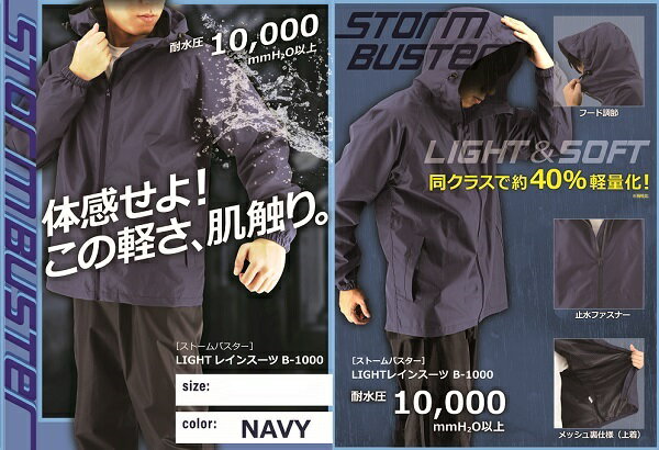 耐水レインウェア 弘進ゴム ストームバスター LIGHTレインスーツ B-1000 【レインコート 作業 仕事 合羽 カッパ 上下 アウトドア 軽量 はっ水 メッシュ裏】【お取り寄せ】レイン通学 梅雨特集