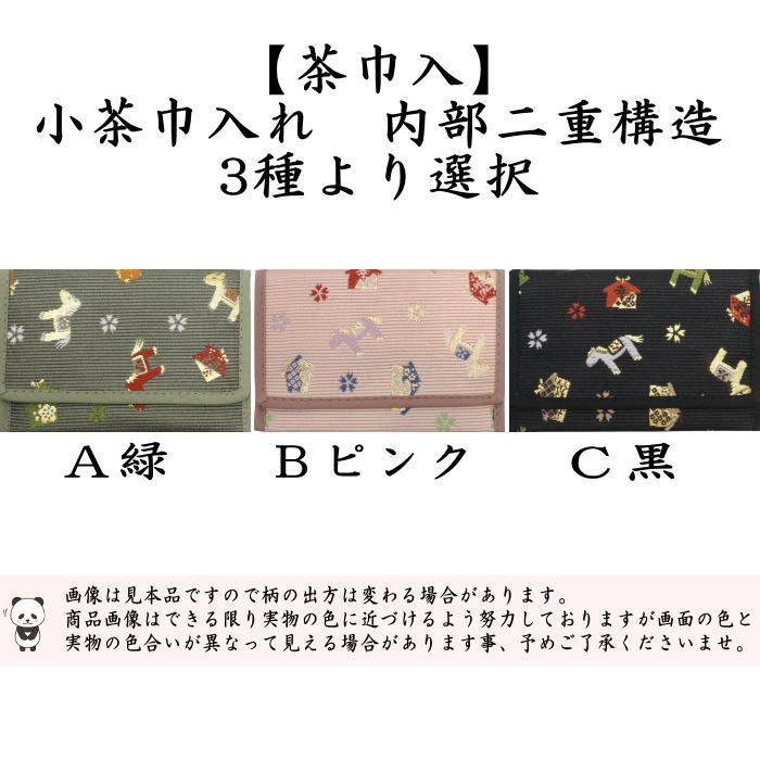 ☆☆【茶器/茶道具 茶巾入れ(茶巾挟み・茶巾ばさみ) 干支「午」】 干支小茶巾入れ 小茶巾入れ 内部二重構造 緑又はピンク又は黒 3種より選択 (干支午 御題明)