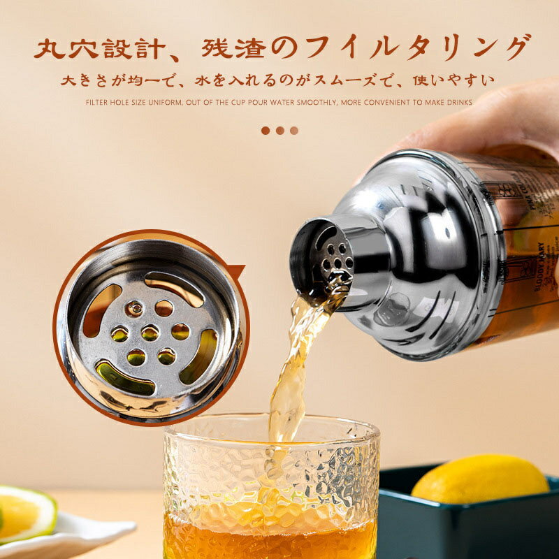 ガラスシェーカー バー用品 ステンレス ガラス 透明 目盛り付き 450ML カクテルシェーカー ガラス バー用品 雑貨