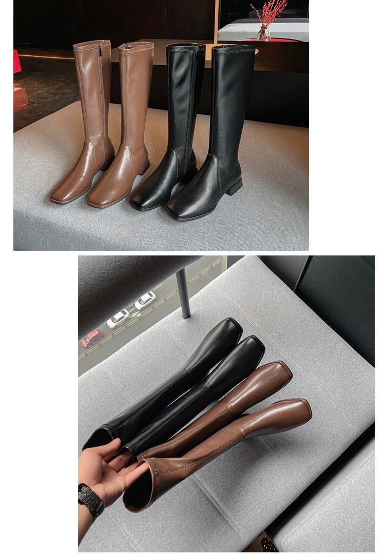 ジョッキーブーツ 革 スクエア靴 疲れない 22〜25cm ブーツ レディース サイドジッパー 上品 ロング 歩きやすい 痛くない 大きいサイズ ゆったり スムース シューズ 美脚 ローヒール 疲れにくい シンプル 春秋冬 おしゃれ