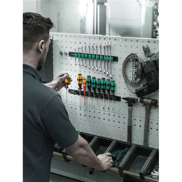 ■商品内容■レールをボルトで壁に固定することが可能です。■クラフトフォームハンドルは人間工学に基づいた快適なドライバーで、マメやタコを防ぎます。■ハードハンドルゾーンは早回しを可能にします。■ソフトハンドルゾーンはしっかりと力を伝えます。■932 Aは貫通軸六角ブレードとインパクトキャップ付き、350、355、335はレーザーチップ付き:Wera(ヴェラ)レーザーチップドライバーの先端は、レーザー光線で微細に粗面化されています。■ネジの頭に「食い込み」カムアウトを防ぎます。■160 iS 電気工事用VDE、レーザーチップ付きです。■"Take it easy " 色分けシステム:刃先とサイズによって色分けされ、必要なツールをすばやく簡単に識別できます。■クラフトフォームドライバー6本、端子ストリップ付きの汎用ドライバーセットです。■プラスドライバー、ポジドライブ(レーザーチップ付き)、トルクスねじ用です。■ブレード径が先細りになっている電気工事用VDEマイナスドライバー1本入りです。■マイナスドライバー2本:ネジ回し、ノミ切り、ほぞ切り用です。■マグネットで金属面にしっかり固定できる端子ストリップレール入りです。■手動・工作機械作業用。■商品スペック【商品名】WERA ヴェラ 9本組 クラフトフォームハンドル ドライバーセット マグネットレール付き 051012【メーカー】WERA ヴェラ【サイズ】・サイズ(mm):150X410X55【重量】単品重量1000g【付属品】貫通 マイナスドライバー:1X5.5X100・1.2X7X125mm(05018264001・05018266001)、プラスドライバー:PH 2 X100mm(05008720001)、ポジドライバー:PZ 1 X80・2 X100mm(05009310001)、トルクスドライバー:TX 20・25 X100mm(05028010001・05028012001)、マイナスドライバー:0.8X4mm(05110004001)、絶縁マイナスドライバー:0.6X3.5mm(05006440001)、マグネットレール:30X400mm(05136414001)【生産国】チェコ【入組数】9点■送料・配送についての注意事項●本商品の出荷目安は【3 - 6営業日 ※土日・祝除く】となります。●お取り寄せ商品のため、稀にご注文入れ違い等により欠品・遅延となる場合がございます。●本商品は仕入元より配送となるため、沖縄・離島への配送はできません。[ 51012 ]