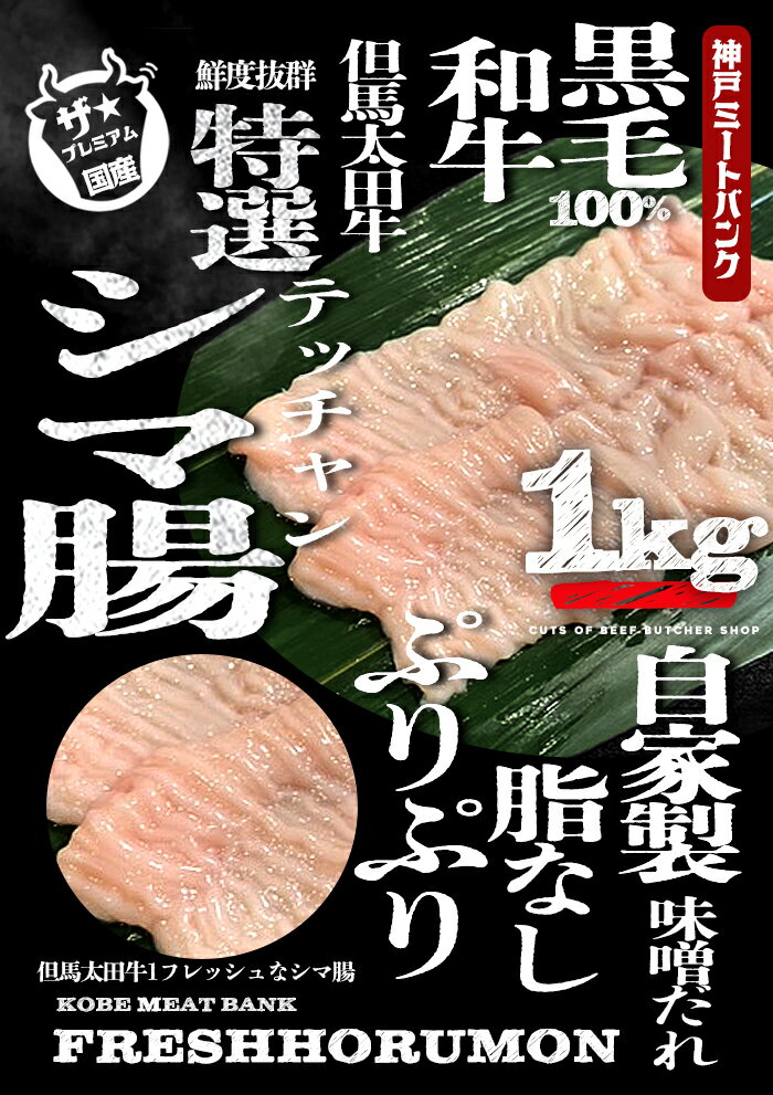 但馬大田牛 大腸 シマ腸 テッチャン 1kg ホルモン鍋 バーベキュー 盛り合わせ もつ鍋 モツ鍋 ホルモン焼き ホルモンうどん 焼肉 BBQ 牛もつ 牛肉 国産 A5等級 黒毛 和牛 雌牛 メス牛