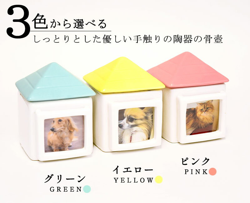 【ポイント10倍 11/20〜11/27】ペット用 骨壷 ミニ ちいさなあたらしいおうち 2寸〜2.3寸 Sサイズ シリコンパッキン 付 小さい 手元供養 骨壺 ミニ骨壷 手元供養 分骨 骨壷 仏具 おうち型 パステルカラー かわいい おしゃれ 緑 黄色 ピンク