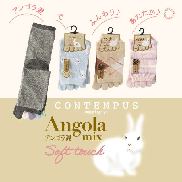 靴下 五本指ソックス レディース 暖かい アンゴラ混 おしゃれ 3足セット 色おまかせ 23cm ~ 25cm 【送料無料】