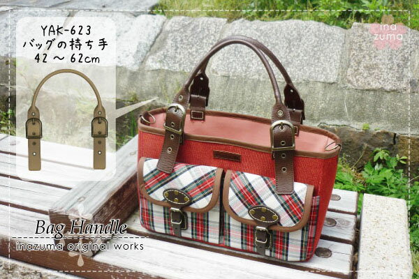 レザー持ち手 2本手 約42~62cm YAK-623《 バッグ制作用 バッグハンドル ハトメ 長さ調節可能 合成皮革 2本入 INAZUMA 合皮製 持ち手 全長約42cm 全長約52cm 全長約62cm 幅約0.8cm手芯入 》