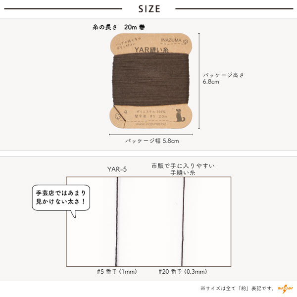 YAR縫い糸 5番手 20m 堅牢染 ポリエステル100% YAR-5 メール便可《 5番手(約1mm) 堅牢染め 20m巻 日本製 バッグ 持ち手 ボタン付け用 口金 縫いつけ用 手縫い糸 合成皮革 縫い糸 手ぬい 太い 丈夫 カラーが豊富 裁縫材料 黒 白 赤 ベージュ YAR オーク アイボリー YAR5 》