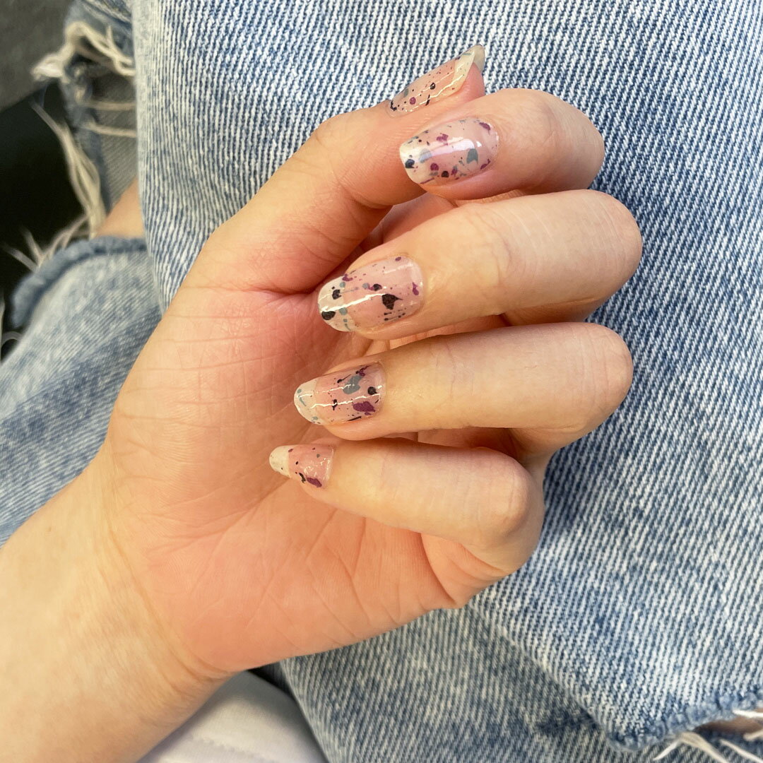 Item Information 【数量限定】クリアベースのデザインネイル。 絵の具やペンキをドリッピングさせたようなアートデザインは、ターコイズブルー、ブラック、パープルの3色使い。 カラフル&個性的なテイストだけどベースがクリアなので、スッキリとした見え方です。 ホワイトや淡色のワンカラーネイルに重ねて使うのもオススメ。 ※モニター発色の具合により、実物とは色合いが異なる場合がございます。 【パッケージに含まれるもの】・マニキュアシート 8サイズx2シート(合計指16本分)・取扱説明書・爪やすり【素材】マニキュア(シートタイプ)【INCOCOとは?】ジェルじゃない、塗らないマニキュア1.乾かす時間が不要 液体のマニキュアを薄いフィルム状にしているので、貼るだけで完成。2.簡単、爪でカット ハサミなどのツールが必要ないので、どこでも簡単にネイルができます。3.除光液でオフ マニキュア成分でできているので、落とすときには除光液を使います。ベース・カラー・トップコートが1枚に凝縮薄いシート状なので、爪にぴったりフィット