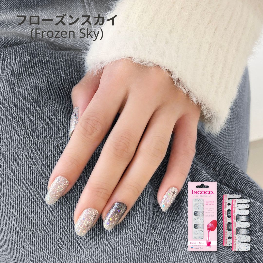 Item Information 【数量限定】やさしい甘さに包まれる、Winter Collection。きらめく砂糖菓子のように心をくすぐり、ふんわりとした温もりで指先を彩ります。様々な雰囲気のファッションコーディネートを楽しめるのもポイントです◎ ※モニター発色の具合により、実物とは色合いが異なる場合がございます。 【パッケージに含まれるもの】・マニキュアシート 8サイズx2シート(合計指16本分)・取扱説明書・爪やすり【素材】マニキュア(シートタイプ)【INCOCOとは?】ジェルじゃない、塗らないマニキュア1.乾かす時間が不要 液体のマニキュアを薄いフィルム状にしているので、貼るだけで完成。2.簡単、爪でカット ハサミなどのツールが必要ないので、どこでも簡単にネイルができます。3.除光液でオフ マニキュア成分でできているので、落とすときには除光液を使います。ベース・カラー・トップコートが1枚に凝縮薄いシート状なので、爪にぴったりフィット【数量限定】やさしい甘さに包まれる、Winter Collection。きらめく砂糖菓子のように心をくすぐり、ふんわりとした温もりで指先を彩ります。様々な雰囲気のファッションコーディネートを楽しめるのもポイントです◎ ※モニター発色の具合により、実物とは色合いが異なる場合がございます。 【パッケージに含まれるもの】・マニキュアシート 8サイズx2シート(合計指16本分)・取扱説明書・爪やすり【素材】マニキュア(シートタイプ)【INCOCOとは?】ジェルじゃない、塗らないマニキュア1.乾かす時間が不要 液体のマニキュアを薄いフィルム状にしているので、貼るだけで完成。2.簡単、爪でカット ハサミなどのツールが必要ないので、どこでも簡単にネイルができます。3.除光液でオフ マニキュア成分でできているので、落とすときには除光液を使います。ベース・カラー・トップコートが1枚に凝縮薄いシート状なので、爪にぴったりフィット 【商品名】 プリズムパーフェクション フローズンスカイ ロイヤルベルべット ペパーミントプレイド スノーフォールロマンス エメラルドアイズ アークティックプレイド シャイニングスノー ポーラームーン タイニーボウ ティンセルハート フロステッドゴールド クリムゾンスパーク シルバーフルーリー