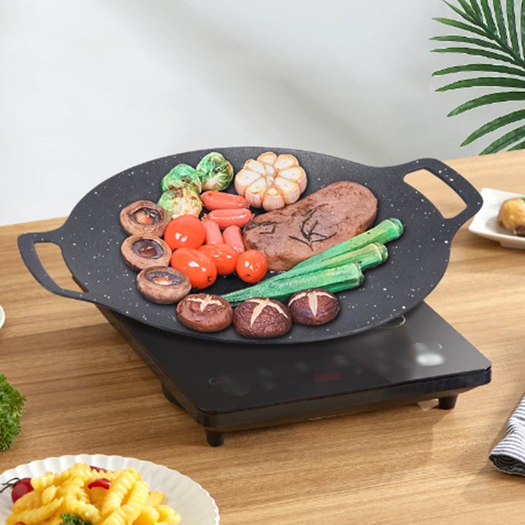 【焦げ付きにくい】 丸型焼肉プレートは、耐摩耗性が高く、錆や傷にも強い高級硬質特殊フッ素樹脂加工を採用しています。調理後のお手入れは非常に簡単。サッと拭き取るだけで、パンはきれいになります。【IH・直火・ガス火対応】アルミ合金素材で、IH、直火、ガス火に対応しています。家庭での使用はもちろん、アウトドアでの料理にもぴったりです。【熱伝導率が高い】6層構造のアルミニウム合金素材を採用し、軽くて熱伝導率が高く、焦げ付きにくいです。【お手入れ簡単】錆びることなく、面倒なシーズニング不要。調理後はさっと拭き取るだけでok。【安定感抜群】底の土台は広く、滑り止め加工がされているため、安定感バツグン。また、ihとの接着面も広く、ムレなく肉焼きが楽しめます。【1台多役】焼く、炒める、煮る、揚げるなど1台多役のマルチプレート、ご家庭でもアウトドアでも様々な料理を楽しめることができます。 サイズ IHガス火両用 サイズについての説明 素材 アルミ合金 表面加工:ふっ素樹脂塗膜加工 色 30cm 33cm 36cm 備考 ●サイズ詳細等の測り方はスタッフ間で統一、徹底はしておりますが、実寸は商品によって若干の誤差(1cm~3cm )がある場合がございますので、予めご了承ください。 ●製造ロットにより、細部形状の違いや、同色でも色味に多少の誤差が生じます。 ●パッケージは改良のため予告なく仕様を変更する場合があります。 ▼商品の色は、撮影時の光や、お客様のモニターの色具合などにより、実際の商品と異なる場合がございます。あらかじめ、ご了承ください。 ▼生地の特性上、やや匂いが強く感じられるものもございます。数日のご使用や陰干しなどで気になる匂いはほとんど感じられなくなります。 ▼同じ商品でも生産時期により形やサイズ、カラーに多少の誤差が生じる場合もございます。 ▼他店舗でも在庫を共有して販売をしている為、受注後欠品となる場合もございます。予め、ご了承お願い申し上げます。 ▼出荷前に全て検品を行っておりますが、万が一商品に不具合があった場合は、お問い合わせフォームまたはメールよりご連絡頂けます様お願い申し上げます。速やかに対応致しますのでご安心ください。