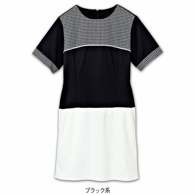 ビューティウェア・千鳥柄切替ストレッチチュニックエステ ユニフォーム エステユニフォーム エステ 制服 スクラブ チュニック クリニック ナース服 白衣 ナース 看護師 アンファミエ