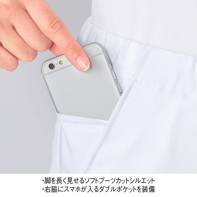 【アンファミエオリジナル】【ストレッチ】【防汚】【透け防止】【帯電防止】【はっ水】レディーの気品が香るエレガントな美的スタイルエレガントさに機能を秘めた優秀素材を採用テフロン™加工軽量ストレッチ柔らかでシワになりにくく通気性よく汗や汚れを弾く動きやすいヨコのびストレッチ。通気性よく水性の汚れを弾いてキレイをキープ。・脚を長く見せるソフトブーツカットシルエット・右脇にスマホが入るダブルポケットを装備⇒エステ・サロン制服にオススメのウェアをもっと見る【商品詳細】●素材/ポリエステル100%(テフロン加工軽量ストレッチ)●ウエスト仕様/総ゴム●ポケット位置/両脇ポケット(右脇スマホポケット付)●裾始末/仕上げ済「テフロン™」および「Teflon™」はケマーズ社の商標です。ライセンスにより株式会社ナースステージが使用しています。NEW・送料無料セットアップ!同素材のオススメトップス&人気のサンダルも【送料無料・セットアップ】ビューティウェア・防汚機能配色パイピングチュニック パンツセットビューティウェア・防汚機能インカムポケット付ラップ風チュニック美脚ヒールスリッパ【関連KW】おすすめ ランキング 人気 口コミ 選び方 色 リーズナブル シンプル 通販 安い オリジナル 人気 高級感 カジュアル ナチュラル おしゃれ オシャレ かっこいい きれいめ キレイめ 大人 オトナ 上品 シンプル ベーシック スタンダード 無地 男性 女性 レディース メンズ ブランド メーカー 看護師 医者 職員 看護婦 看護助手 学生 介護士 歯科医師 歯科助手 医療事務 医療系学生 研修生ドクター 先生 営業 勤務 夜勤 hospital 実習 店舗 接骨院 整骨医院 メディカル 仕事 仕事 用 病院 薬局 オフィス 学校 介護 師 院内 事務 業務 無難 20代 30代 40代 50代 60代 ギフト プレゼント