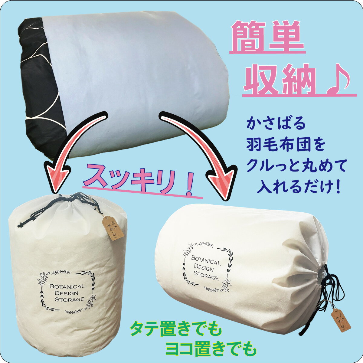 商品情報商品説明布団をクルっと丸めて打入れるだけでスッキリ!筒型のスッキリ自立デザインで縦置き/横置 どちらもOKリビングに置いたり押し入れやクローゼットなど、色々な所でお使いいただけますクルっと丸めて入れるだけ!カンタン収納羽毛布団を畳んで丸めて(羽毛布団内の空気を抜きながら)、巾着型のケースにサッと入れてヒモを結ぶだけ底面 活性炭シート入り/ホコリ除けカバー付き通気性の良い不織布製+(底面)活性炭シート入り+巾着の口部分に付属のホコリ除けカバーをセット、更にホコリや汚れからしっかりガードプラスチックケースの様に場所を取らず、使わない時は小さく折り畳めるので場所や手間を取りません内容物が書けるネームタグに中身を書いておけば、取り出す時に便利!色々な使い方をお楽しみください収納目安シングルサイズ 羽毛布団 約1枚サイズ約高さ55x直径35cm材質ポリプロピレン不織布/活性炭シート※洗えません色ホワイトご注意・輸送の都合上折り畳んで配送されますので、多少の折りジワが残ります。収納物を入れて保管しているうちに折りジワは多少伸びて軽減されます。・厚紙などは入っていませんので、収納物が無い場合は自立しません(使用しない時は小さくたためます)・水、熱、紫外線にあてないでください関連ワード布団 収納袋 押し入れ クローゼット 整理 入れ替え 衣替え 持ち手 防ダニ コンパクト セット 圧縮 ダニ ケース ラック羽毛 布団収納袋 立てられる2枚組 活性炭シート入 オシャレ クルっと丸めてスッキリ収納 横置き 縦置き 積み重ね 収納 自立 布団収納 毛布や寝具収納にも 通気性の良い 厚手 不織布製 布団袋 収納ケース ホコリ除けカバー ネームタグ付 クローゼット 押し入れ イニコライフ ご要望にお応えして\楽天初出店!/人気商品が楽天限定でお買い得価格! 11