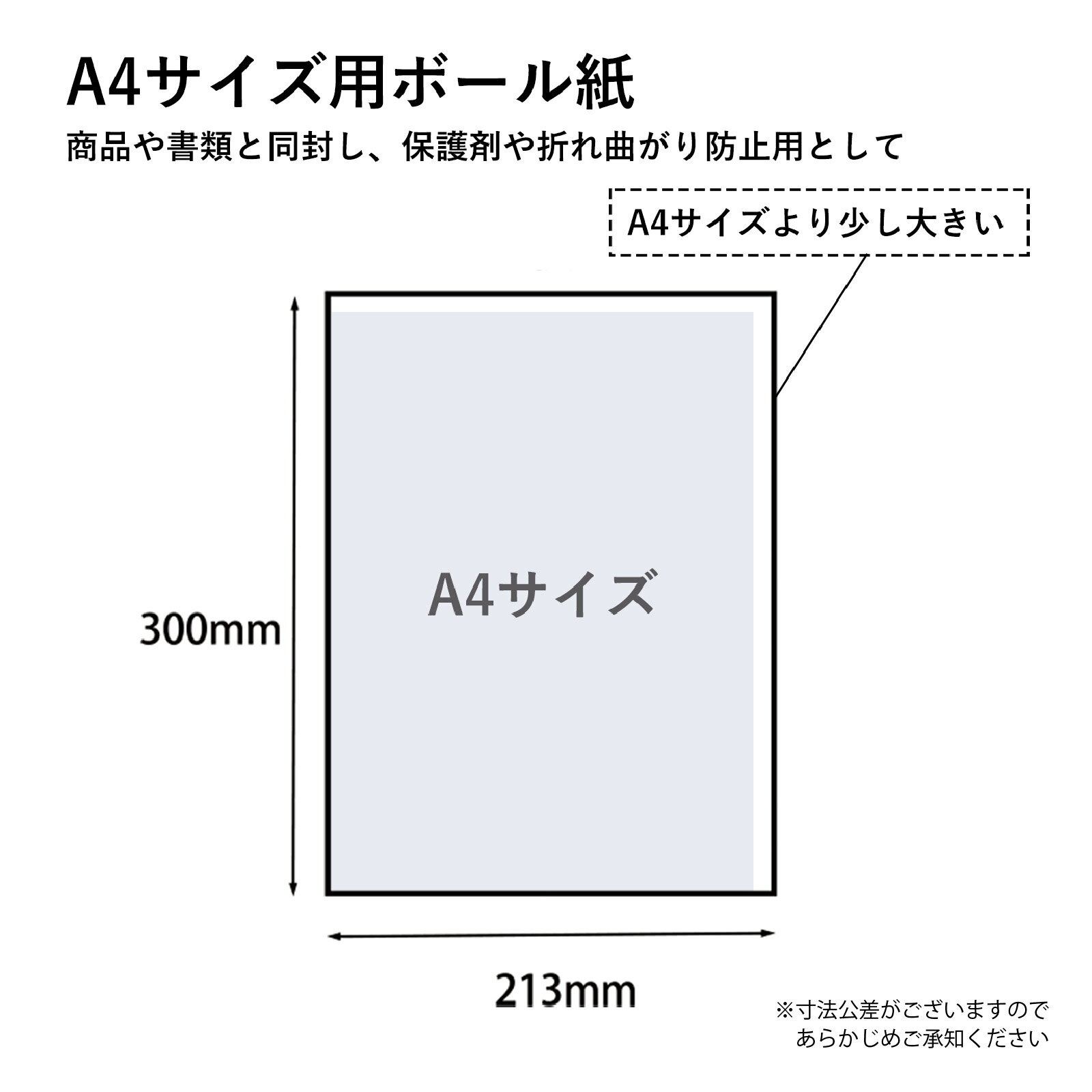 【A4サイズより少し大きい片面白色ボール紙】 A4サイズよりわずかに大きいボール紙で、書類や商品をしっかり守ります。 紙厚約1.0mmの強度で折れ曲がり防止や梱包補強に最適。 表面は白色で筆記性が高く、裏面は茶色のため、用途に応じて使い分け可能。 工作やDIYにもおすすめの厚紙素材です。 【梱包・工作・書類保護に幅広く対応】 折り曲げやハサミでのカットが可能なため、梱包用保護材としてはもちろん カード作りや紙芝居、POP制作などのクラフト用途にも活躍。 学校や幼稚園の教材、絵本制作など幅広いシーンで使える便利なボール紙です。 【通販事業者・教育現場・クリエイターにおすすめ】 ネットショップの梱包補強材として、また教育現場での工作教材やクリエイターの制作素材として最適。 書類や商品を安全に届けたい方、オリジナル作品を作りたい方にぴったりの厚紙です。 【折れ曲がり防止・保護材として信頼の厚み】 重要な書類や商品を配送時にしっかり守る保護材として活躍。 紙厚約1.0mmの強度で折れ曲がりを防止し、加工しやすいのでDIYやクラフトにも最適。 梱包と制作の両方に対応する万能なボール紙です。 【ご注意】 ボール紙は温度や湿気によりカールしますので保管の際は、必ず袋に戻し封をしてください。 商品名 ボール紙 A4サイズ用(20枚入)×5袋 型番 CB-A4-020 サイズ 300x213mmA4より少し大きい片面白色ボール紙 A4サイズよりわずかに大きく、書類や商品をしっかり保護できる厚紙です。 紙厚約1.0mmで折れ曲がり防止や梱包補強に最適。 表面は白色で筆記性が高く、裏面は茶色なので用途に応じて使い分け可能。 ハサミでカットや折り曲げもでき、工作・DIY・POP制作にもおすすめ。 学校や幼稚園の教材にも活躍します。