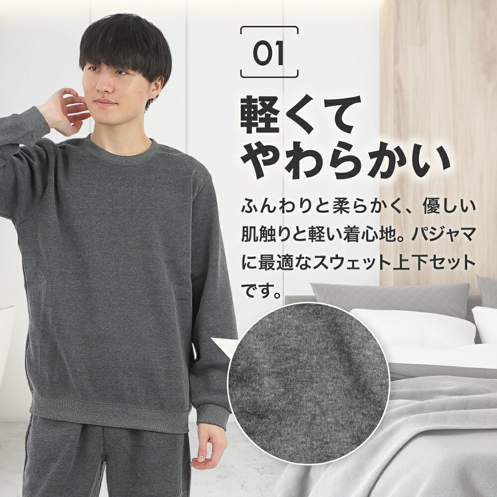 【500円OFFクーポン配布中!】スウェット 裏起毛 パジャマ 上下 セット メンズ 無地 長袖 スエット M L LL 3L 送料無料 セットアップ 部屋着 男女兼用 秋 冬 ルームウェア 暖かい 防寒 スウェットパンツ 大きいサイズ