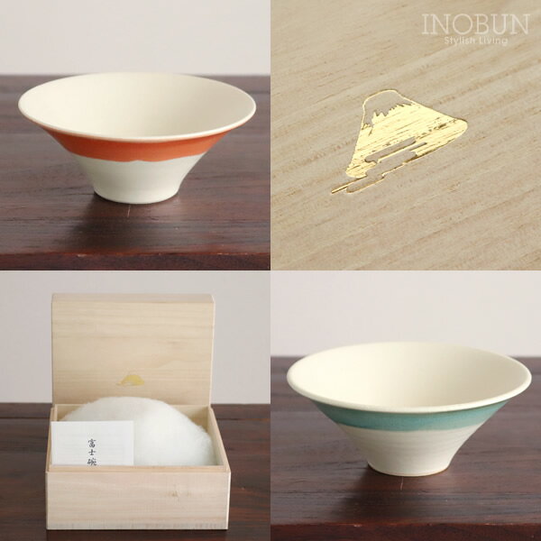 富士山を表現した美しいペア茶碗ギフト*日本の象徴、富士山に見立てたペアのお茶碗セットです。 長崎県波佐見の陶窯にて丁寧に焼き上げられた富士碗は、雪を表す白釉の上から、釉薬を自然に垂らすことで生まれる美しい対比をお楽しみいただけます。 毎日違った表情を見せてくれる富士山と同じように、釉薬の垂れ具合もそれぞれ異なり、ひとつひとつが豊かな表情を描きます。 上品な桐箱に白い綿を敷き詰めて、雄大な富士山に掛かる雲海を表現しました。 開けた瞬間笑顔になる美しさは、新たな門出や幸せを願うギフトにぴったりです♪※必ずお読み下さい!!詳しくはこちらをご覧ください。カテゴリキッチン・ランチ > 和食器 > お碗・鉢カラーブルー/レッド仕様・規格●ペア茶碗、桐箱入り●本体サイズ:φ135 x H55mm(BL茶碗)、φ120 x H50mm(RD茶碗) ●BOXサイズ:W158 x D158 x H80mm ●素材・原材料:陶器/波佐見焼※食器洗い機不可 ※中性洗剤などでの手洗いをおすすめいたします。●原産地:日本製【Floyd フロイド】 人々に感動と驚き、そして微笑を届けることを使命とする静岡県三島発のプロダクトレーベル。 思わず笑みがこぼれてしまうような商品から、その可愛さにひと目で心が奪われる商品まで、独創的でおしゃれなアイテムを生み出しています。 日本の伝統を大事にした美しい逸品揃いで、引き出物や内祝いなどにも最適です。 【ラッピング希望のお客様へ】 こちらはすでに木製のギフトボックスが付属しております。 ラッピングをご希望の場合は「包装紙ラッピング」をお選びください。