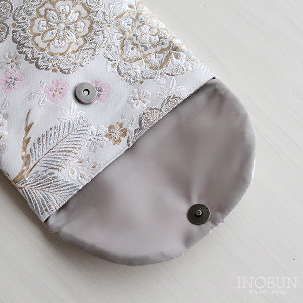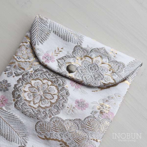 【限定販売】御朱印帳ケース 松葉桜 西陣織 金襴 プラチナライン ポーチ マグネットタイプ 織物 おしゃれ ギフト お参り 御朱印巡り