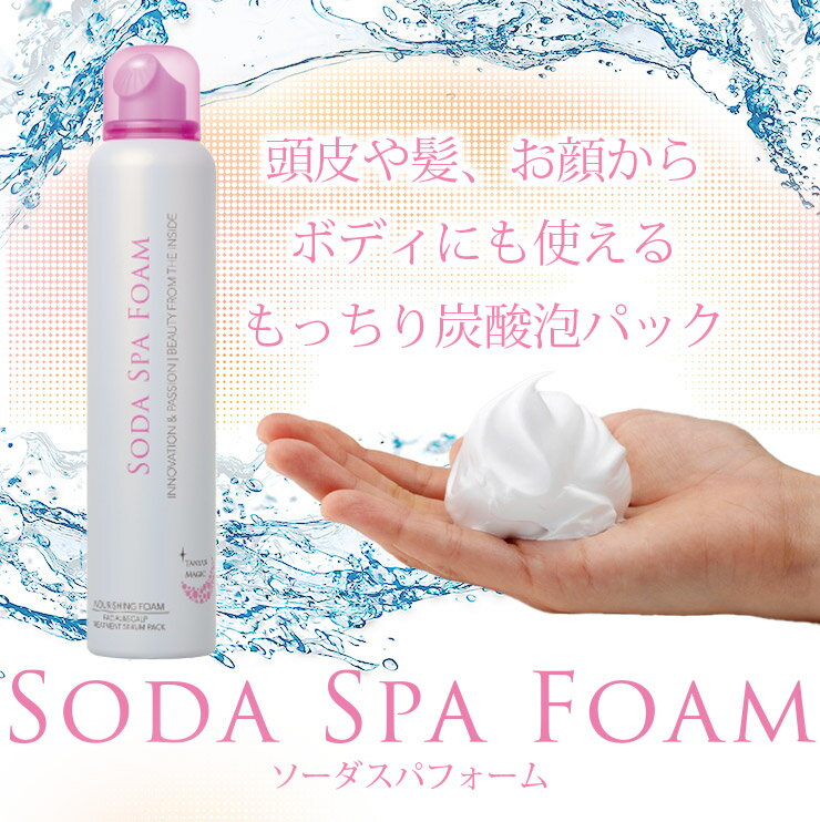 この商品の特徴 8,000ppmの高濃度炭酸ガスパック。洗顔・美容液・パックの機能を備えた新ソーダスパフォーム。お肌の汚れを落とし、潤いを与えながら、明るい印象の肌へと導きます。フェイス&ヘア&ボディを簡単パックで内側から輝く美しさへ。 4つの美容成分を新配合 1.備長炭・・・汚れを吸着 2.コラーゲン・・・お肌にうるおいを与える 3.ビタミンC誘導体・・・ブライトニング 4.ヒアルロン酸・・・お肌に潤いを与える 炭酸ガスを閉じ込めた、弾力のある高密度の泡。炭酸美容のスペシャルケアを、簡単かつ手軽にご自宅でお楽しみいただけるアイテムです。岐阜県下呂市小坂町にある温泉旅館“泉岳館”の炭酸泉を使用しており、お肌をしっとりと保湿します。二酸化炭素(噴射剤)の配合割合は8,000ppm。スキンケアや、スカルプ&ヘアケア、全身にお使い頂けます。 使い方は、簡単。洗顔後、タオルドライした乾いたお肌に泡を広げ、指先でやさしくなじませた後、数分置いて洗い流すだけ。 泡で汚れを浮かせることによって、毛穴の奥に詰まったお肌の汚れや皮脂、古い角質を浮かせ、洗い流すとすっきりと汚れが落ち、クリアな素肌へ導きます。お肌のごわつきが気になっていた方も、炭酸美容のケアをすることによって、その後に使うスキンケアアイテムの肌なじみの良さを実感いただけます。 炭酸ガスはパチパチとした使用感ではなく、やさしい使い心地。お手入れ中は、泡のラッピング効果や炭酸がはじけることによるタッピング効果でじんわり温かく感じます。 お顔のお手入れに加え、頭皮やボディーにもおすすめ。頭皮のニオイの元となる汚れを、泡で浮かせて落とします。エステサロンなどで人気の炭酸美容を、短時間で毎日できるよう開発された商品です。 <天然炭酸温泉配合> 温泉の一種である「炭酸泉」。炭酸泉の特徴は、入浴すると、体に気泡(炭酸ガス)が付着します。この炭酸ガスは皮膚から吸収され、めぐりをよくするといわれています。ソーダスパフォームには、岐阜県下呂市小坂町にある温泉旅館“泉岳館”の炭酸泉を使用しており、お肌をしっとりと保湿します。 <落としきれていない汚れをオフ> 紫外線対策で、UVクリームやUVファンデーションを使うのは、もはや常識ですが、実は、クレンジングや洗顔石鹸では完全に落としきれていないのが現実です。これらのUV対策用の化粧品が肌に残ることで、シワやシミなどの原因にもなりかねません。ソーダスパフォームなら、落としきれない化粧汚れをキレイに落としきって、お肌を清潔に保つことができます。 <使用期限について> 未開封3年、開封後1年 ※炭酸が抜けるのを防ぐため、キャップをして保管してください。 ご使用方法 <フェイス&ボディ> 高濃度の炭酸ガスを閉じ込めた密度の高い泡で、毛穴の奥に詰まった汚れ、皮脂、古い角質を浮かせ、すっきりと汚れを落とします。 1.適量(直径約5cm)を手に取り、乾いたお肌にのせていきます。 ※メイクは落とした状態でお使い下さい。 2.泡をクッションにして、顔の中心から外側へとやさしくマッサージするように塗布します。 3.泡が全体に行き渡ったら、5分程度パックし、十分に洗い流します。 <ヘアー&スカルプ> 炭酸には、皮脂汚れを吸着する働きや、毛穴を引き締める働きがあるため、頭皮マッサージや予洗い、すすぎに使うと、よい効果が期待できます。 1.適量を髪全体に塗布し、頭皮にもなじませます。※乾いた髪、またはシャンプー後のタオルドライした状態にもお使いいただけます。 2.泡をクッションにして、指の腹でやさしく頭皮をマッサージします。髪の先まで泡が付いていることを確認します。 3.泡が全体に行き渡ったら、5分程度パックし、充分に洗い流します。 ※炭酸の性質により、温かく感じられることがあります。 ※炭酸が濃密泡から逃げにくいように作られておりますので、パチパチした体感はございません。 ※低温の場所に置いていた場合、プッシュしてもムース状にならず糸状で出てくる場合がございます。その場合は、40度くらいのお湯に2〜3分つけていただくと元に戻ります。 【お使いいただく際に】 皮膚が弱い方は、ご使用中にまれに皮膚に刺激を感じる方がいらっしゃいます。肌への刺激が強い、なかなかヒリヒリ感が消えない場合は使用を中止し、医師または薬剤師にご相談ください。 敏感肌とは、特定の物質や刺激に対して、過敏に反応したりする肌質です。ご使用の際に、「肌がヒリヒリする」などの違和感を感じた場合は、敏感肌の危険信号を体が出しています。その際はまず、体全体の環境から整えることから始めてください。 炭酸は、体全体の環境を整え、健康と美容にとてもよいとされています。ぜひ、炭酸を毎日の生活に取り入れて、すこやかな毎日をお送りください。 商品情報 【内容量】 150g×2本 1本につき約45回分です。1回分(直径5〜6cm程度)の量によっては使用回数に変化があります。 【全成分】 水、BG、グリセリン、ジグリ