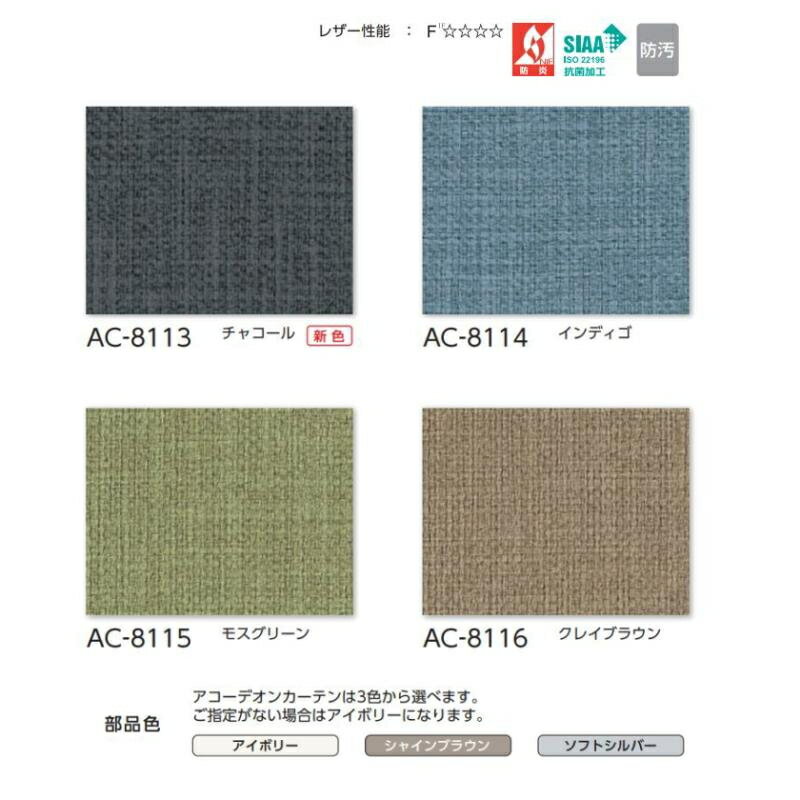 アコーディオンカーテン 片開き タチカワブラインド 防炎 抗菌 防汚 アクセンテ AC8113〜8116 幅301〜330cmX高さ241cm〜260cmまで