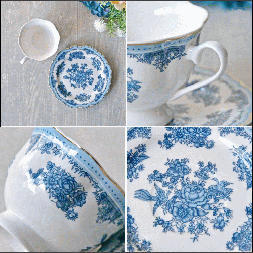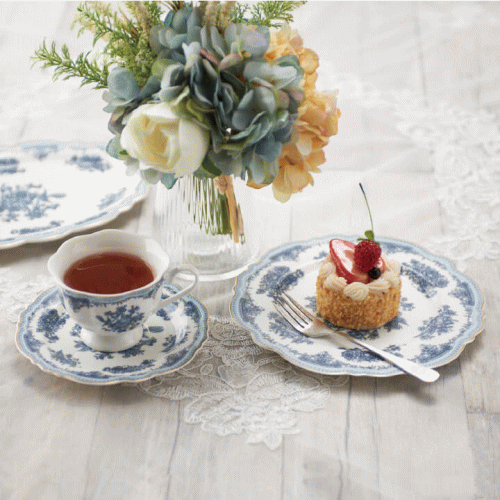 上品な深みのあるブルーでお花と鳥の絵をプリントした、トワルドジュイシリーズのカップ&ソーサー。 脚の付いた口広がりのエレガントなフォルムで、コーヒーにも紅茶にも使いやすいカップです。 ソーサーも全面に絵柄が施された華やかなデザインで、ケーキプレートとして使えます。 落ち着いたカラーで和食との相性も◎。 同じシリーズで揃えれば、ホテルのラウンジや老舗の喫茶店のような、優雅なティータイムを楽しめます。 トワルドジュイとは、フランスで17世紀頃から現代まで受け継がれてきた伝統的なプリント布地。ヨーロッパの日常生活や田園風景を切り取り、単色でプリントする手法が特徴です。衣類や家具やカーテン、壁紙や食器にも広く使われているデザインです。 【サイズ】 カップ:直径10.5φ×高さ7cm、容量200ml ソーサー:直径15.5φ×厚み1.5cm 【材質】陶器 【原産国】中国 【注意事項】 食器洗浄機・電子レンジ・オーブン:使用不可 ゴールド加工部分は手作業のため仕上がりに個体差があります。また製造工程上、多少の傷や擦れが生じます。不良品ではありませんので予めご了承ください。