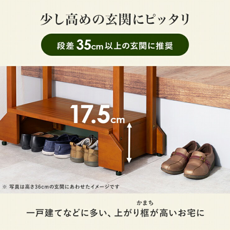 【スーパーSALE スタート28H限定!最大20%OFFクーポン配布中!】天然木 手すり付き 玄関踏み台 VH-7938-D 幅76.5cm 奥行き35cm 高さ95cm 踏み台高さ17.5cm 玄関 転倒防止 玄関収納 玄関ベンチ フック付き 杖ホルダー シューズラック シューズボックス 靴箱 踏み台