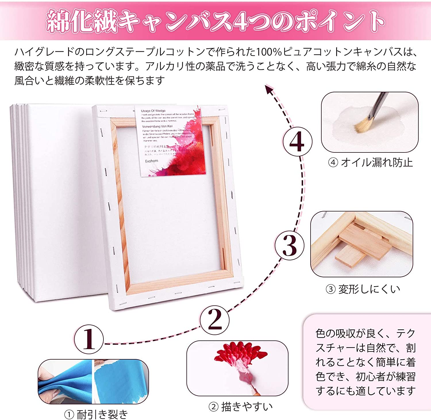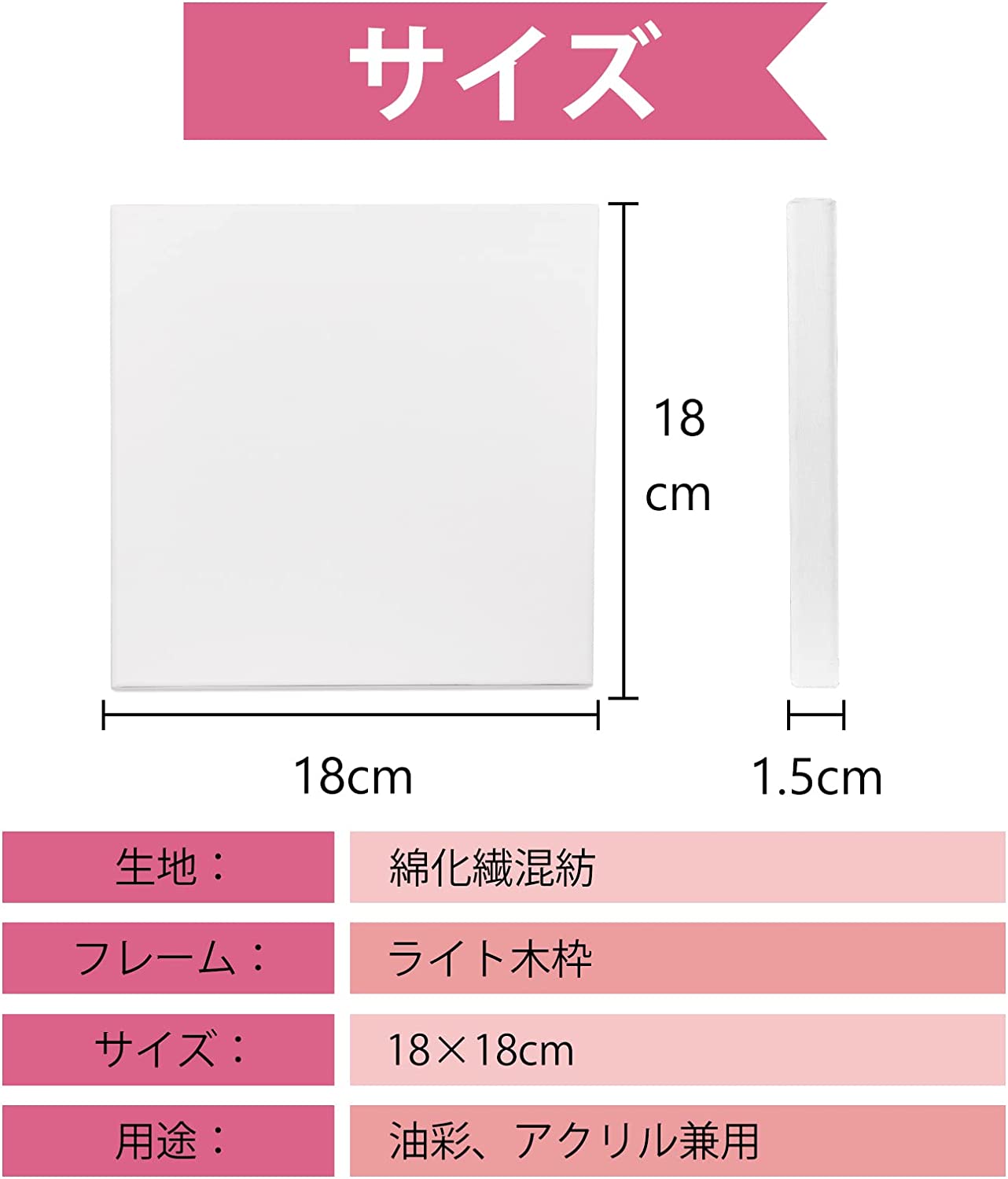 【仕様&丈夫な梱包】:S0サイズ 180x180mm、1個/セット 【生地】:綿化繊混紡 【フレーム】ライト木枠、張りキャンパスはプラスチックフィルムで包まれています。また、四隅はコーナープロテクターがあります、張りキャンパスをしっかり保護し、耐久性ときれいにするために設計されています。 【中目・綿化繊キャンバス】素材に綿・化繊を使用している為、麻張キャンバスに比べキャンバスの目が均一できれいです。キャンバスは中目、油彩・アクリル兼用の半吸収性です。亜麻に比べ繊細な綿は、滑らかな画面をつくり、細密描写に適しています。アクリル絵具・油絵の具を使って本格的な絵の世界を表現出来る! 【携帯便利&繰り返し使える】:描かれたキャンバスは、釘を抜いて取り外すことができ、描かれている表面を外側にして、丸めて保存することができます。内側にして丸めると剥離する原因になります。残された木枠は、キャンバスを自分で張って再利用できます。軽いので携帯性に優れ、野外スケッチなどにも向いています。 【オイル漏れ防止&耐引き裂き】キャンバスは下地処理が施されているので、すぐに描くことができます。下地は水性と油性の中間の性質がある。オイル漏れ防止できます、リップストップ生地を使用しています、引き裂きにくい です。 【サイズと枚数選択可&広い用途】 :弊店はS0サイズ、F3サイズ、F4サイズ、F6サイズ、S4サイズもお取り扱っております、用途や好みに合わせて選ぶことができます。油彩・アクリル兼用なので、水彩画、油絵画、芸術作品、絵画、工芸、ホームデコレーションなども適用です。初心者からプロまでどなたでもご利用いただけます。
