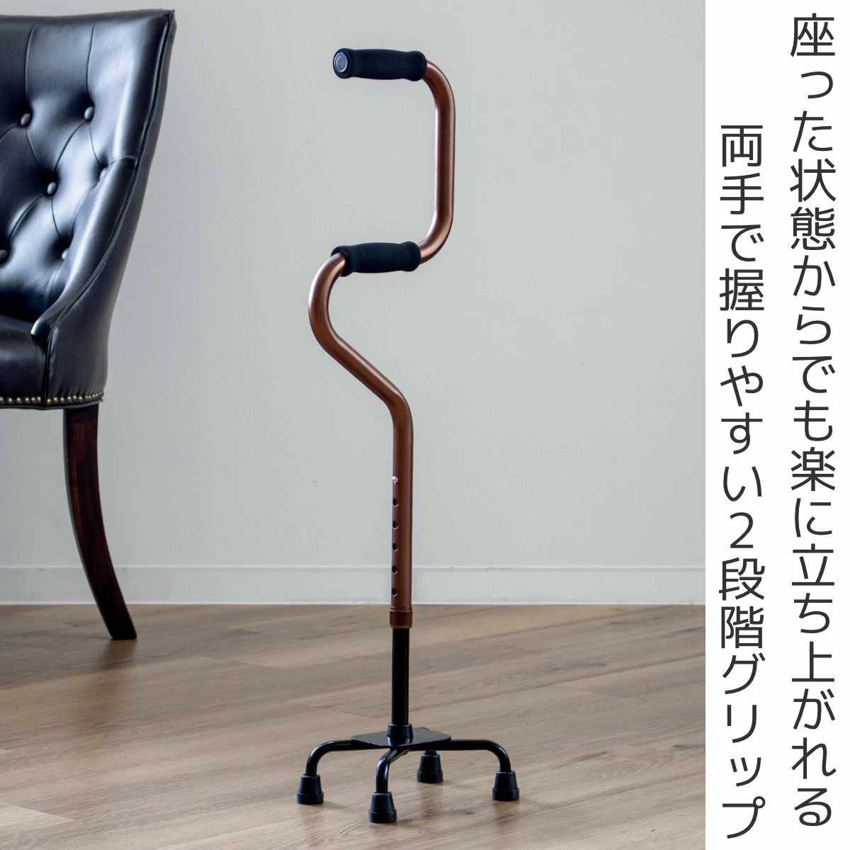 杖 2段階 4点杖 立ち上がり 軽量 多点杖 ステッキ 介護 自立式 非課税 ( 四点杖 6段階調節 伸縮杖 歩行 補助 リハビリ プレゼント 女性 男性 介護用品 倒れない 安定 握りやすい 衝撃吸収 滑りにくい 転倒防止 おしゃれ )【39ショップ】