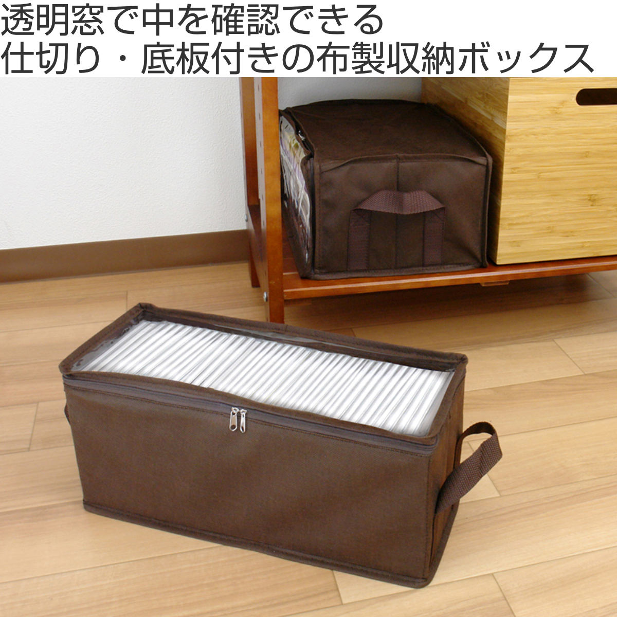 サイズ【CDサイズ】約 幅35×奥行13.5×高さ15.5(cm)【DVDサイズ】約 幅30×奥行20×高さ15(cm)【新書サイズ】約 幅35×奥行18.5×高さ12.5(cm)【青年コミックサイズ】約 幅35×奥行19.5×高さ14(cm)【文庫本サイズ】約 幅35×奥行16×高さ11.5(cm)【新聞紙・雑誌サイズ】約 幅31×奥行24.5×高さ15(cm)内容量【単品】1個【3個セット】同サイズ3個材質本体:不織布(ポリプロピレン)窓:ポリ塩化ビニル樹脂芯材:紙生産国ベトナム製耐荷重【CDサイズ】【DVDサイズ】【新書サイズ】【青年コミックサイズ】【文庫本サイズ】約 5kg【新聞紙・雑誌サイズ】約 7kg備考〈1個あたりの収納目安〉【CDサイズ】CD 約35枚【DVDサイズ】DVD 約20枚【新書サイズ】新書 約24冊【青年コミックサイズ】青年コミック 約20冊【文庫本サイズ】文庫本 約23冊【新聞紙・雑誌サイズ】新聞紙 約20部、雑誌 約15冊区分返品・キャンセル区分(小型商品)ギフトラッピングページを見る収納ボックス メディア収納 布製 CD DVD 本おすすめポイントメディア収納ボックス【CDサイズ】【DVDサイズ】【新書サイズ】【青年コミックサイズ】【文庫本サイズ】【新聞紙・雑誌サイズ】あふれがちな漫画本、CD、ゲームソフトなどを収納できるメディア収納ボックスです。通気性が良く軽量の不織布製で、使用しない時はコンパクトに折りたためます。 【CDサイズ】【DVDサイズ】新書サイズ】【青年コミックサイズ】【文庫本サイズ】仕切りと底板付きボックスの中で収納物が倒れないように仕切りが付いています。厚紙の底板を付属しているため、底面のポケットに厚紙を差し込むことで、丈夫になり長持ちします。【新聞紙・雑誌サイズ】前開き・平積み仕様で雑誌や本を傷めない雑誌や本を平積みに収納できるので、縦に並べて収納するより本を傷めにいです。商品詳細中が確認できる透明窓透明窓で背表紙や中が分かるので、整理しやすいです。ダブルファスナーダブルファスナーで楽に開け閉めできます。取っ手付き取り出しや持ち運びに便利な取っ手付きです。サイズ関連キーワード:新書 単行本 少年コミック 漫画文庫 仕切付き 新聞紙 新聞 ストッカー ノート B5サイズ 底板 保管 整理整頓 平積み 透明窓付き 持ち手付き メディア収納ケース PS1 プレイステーション プレステ コンパクト 折りたたみ 茶色 ブラウン 使いやすい 便利 おすすめ人気 ケース ボックス ダブルファスナー コレクション 整理 整頓 片付け 仕切り付き 約35枚 折り畳み PS2 約20枚 まんが マンガ PSvita PSP スイッチ switch 約24冊 約20冊 約23冊 約15冊 約20部 LH19892関連商品はこちら収納ボックス DVDサイズ 幅30×奥行20×798円収納ボックス DVDサイズ 幅30×奥行20×2,080円収納ボックス CDサイズ 幅35×奥行13.52,080円収納ボックス CDサイズ 幅35×奥行13.5798円収納ボックス 新書サイズ 幅35×奥行18.5798円収納ボックス 新書サイズ 幅35×奥行18.52,080円収納ボックス 青年コミックサイズ 幅35×奥行2,080円収納ボックス 文庫本サイズ 幅35×奥行16×718円収納ボックス 文庫本サイズ 幅35×奥行16×2,080円収納ボックス 新聞紙・雑誌サイズ 幅31×奥行718円収納ボックス 新聞紙・雑誌サイズ 幅31×奥行2,080円収納ケース CD DVD コミック バックル式998円~