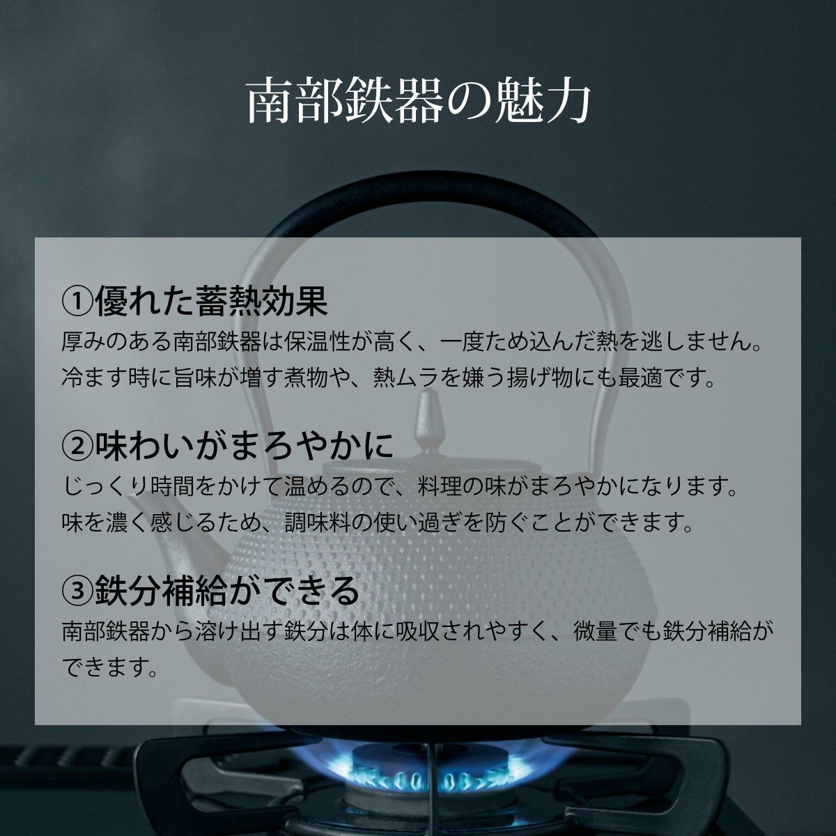 サイズ約 高さ5.5(cm)直径:約 29(cm)重量約 3300g内容量1個材質鋳鉄生産国日本製熱源IH・ガス火両対応区分返品・キャンセル区分(小型商品)ギフトラッピングページを見る●オーソドックスなすき焼き鍋28cmです。●すき焼きはもちろん、焼き肉料理にも適します。●2本ツルなので持ち運びにも安定感抜群です。●ガス火・IHに対応します。おすすめポイント蓄熱性に優れた南部鉄器のすき焼き鍋 28cm関東風・関西風どちらにも対応出来る南部鉄器のすき鍋です。熱をたっぷり蓄えるので食材を足しても温度が下がりにくく、味がしっかりしみこみます。2本のツル付きなので安定して運べます。江戸時代から続く日本の伝統工芸品素朴で味わいのある「南部鉄器」は、岩手県が誇る伝統工芸品です。保温性が高く、じっくりと温まる性質を持つため料理の味がまろやかになります。また、南部鉄器から溶け出す鉄分は体に吸収されやすく、不足しがちな鉄分補給にも役立ちます。シリーズ紹介すき鍋・20cmすき鍋・22cmすき鍋・24cmすき鍋・26cmすき鍋・28cmすき鍋・30cm関連キーワード:IHOK IH使える ガスOK ガス火OK ガスコンロ対応 おすすめ オススメ シンプル 調理用品 調理道具 なべ 鍋 おなべ お鍋 餃子鍋 パエリア鍋 パエリヤ鍋 浅型鍋 鉄製_iron_調理器具 LH15259 LH13150関連商品はこちらすき焼き鍋 24cm IH対応 鉄製 すき鍋 4,980円すき焼き鍋 20cm IH対応 鉄製 すき鍋 4,080円すき焼き鍋 26cm IH対応 鉄製 すき鍋 4,980円すき焼き鍋 17cm ガス火専用 日本製 一人2,480円いろり鍋 27cm IH対応 木蓋付き 割烹 16,800円いろり鍋 24cm IH対応 木蓋付き 割烹 14,800円いろり鍋 21cm IH対応 S鉄鍋 南部鉄器4,780円囲炉裏鍋 南部鉄 割烹 丸鍋 30cm 木蓋付16,800円いろり鍋 24cm IH対応 おもてなしグルメ5,480円いろり鍋 27cm IH対応 おもてなしグルメ6,980円両手中華鍋 37cm IH対応 中華健康鍋 南19,980円両手中華鍋 34cm IH対応 中華健康鍋 南17,980円