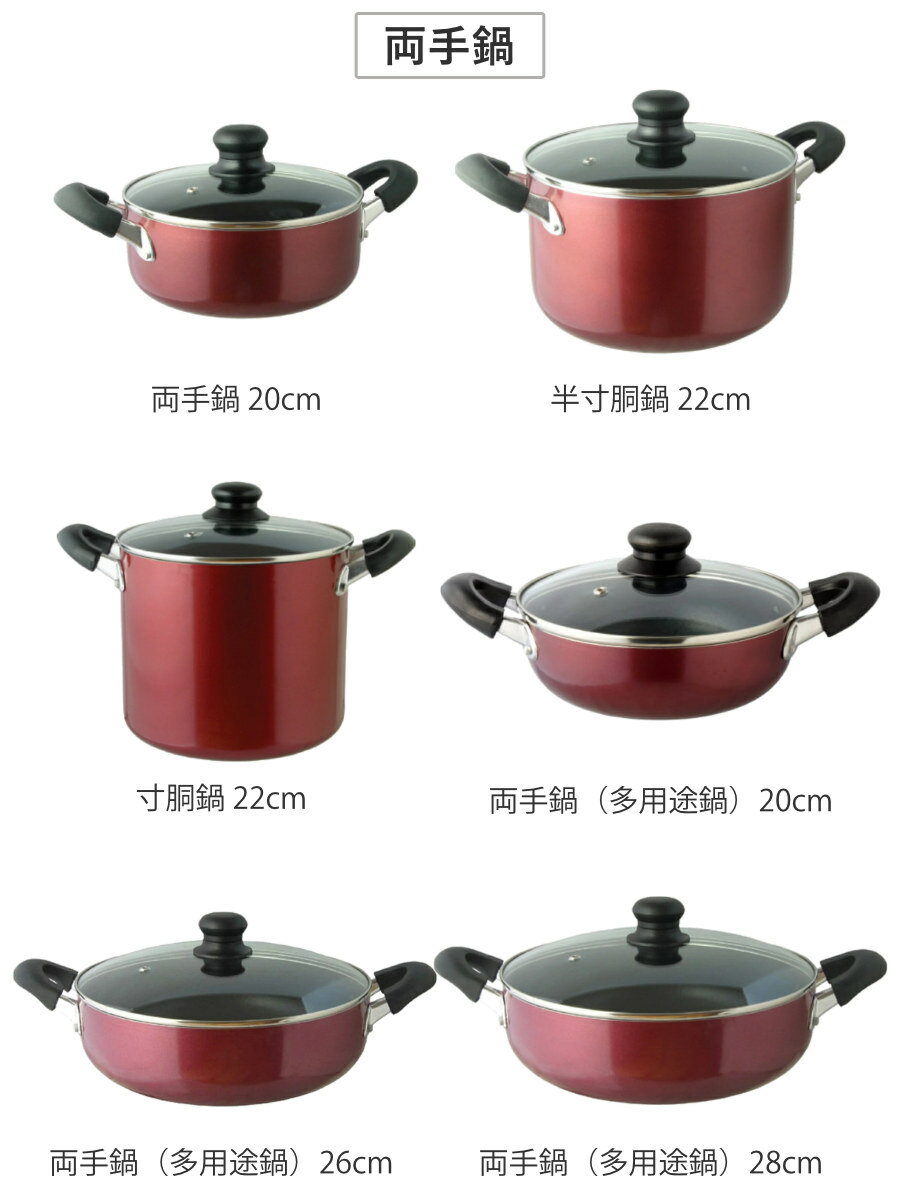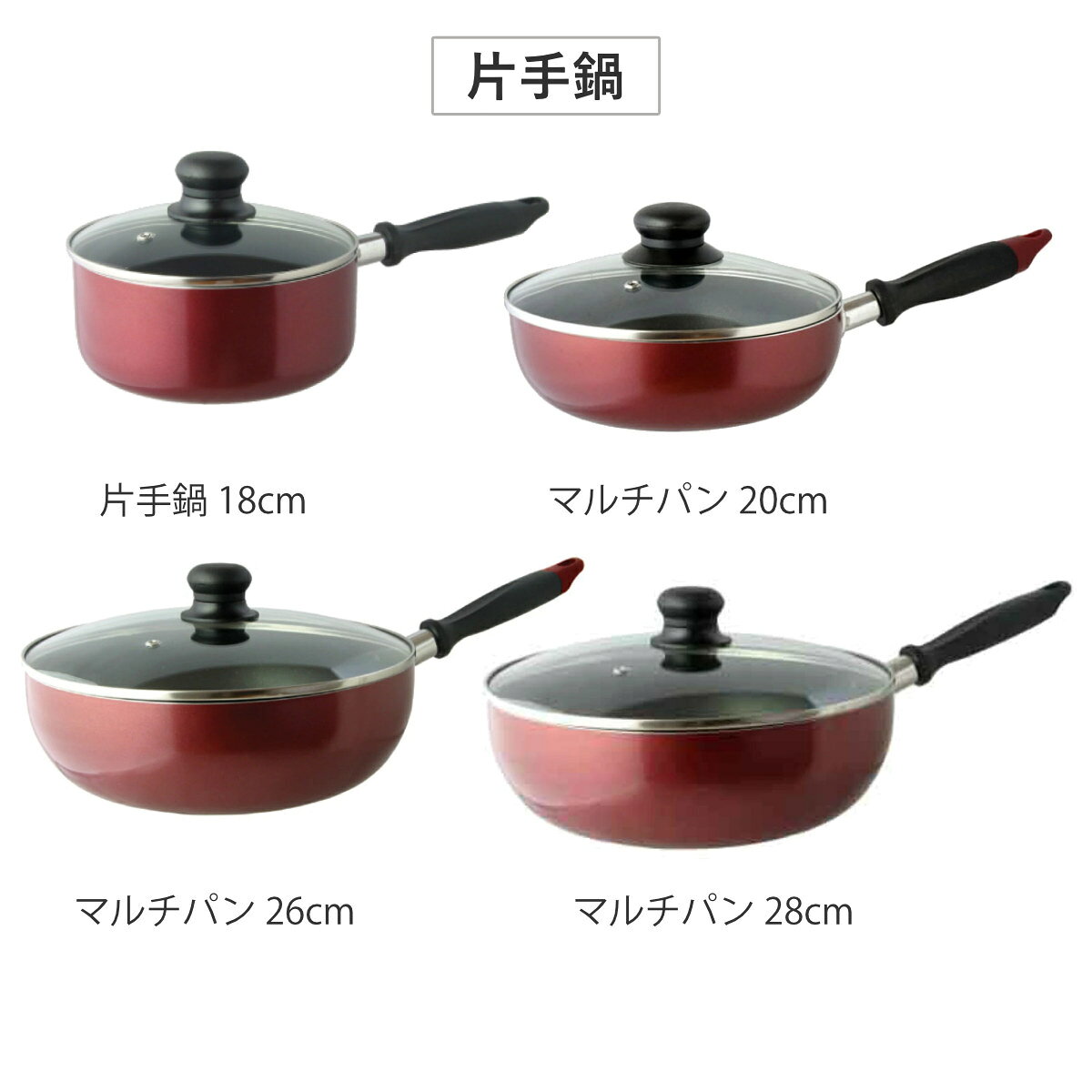 片手鍋 両手鍋 18~28cm IH対応 キュイジーヌ ガラス蓋付き ( ガス火対応 片手なべ 両手なべ 寸胴鍋 調理鍋 フライパン アルミ鍋 なべ 鍋 深型鍋 深型フライパン パスタ鍋 フタ付き 蓋付き フッ素樹脂加工 調理器具 レッド 赤 )【39ショップ】