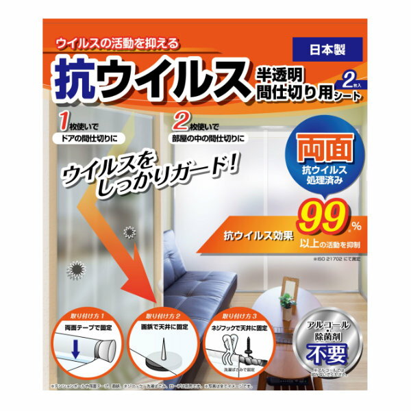 間仕切り カーテン 2枚入り 120×150cm 抗ウイルス 日本製 透明間仕切りシート ( のれん 仕切りシート ウィルス対策 水拭き 除菌剤不要 簡単 取り付け カーテンレール ワイヤー カウンター 対面 玄関 リビング 活動抑制 ) 【39ショップ】