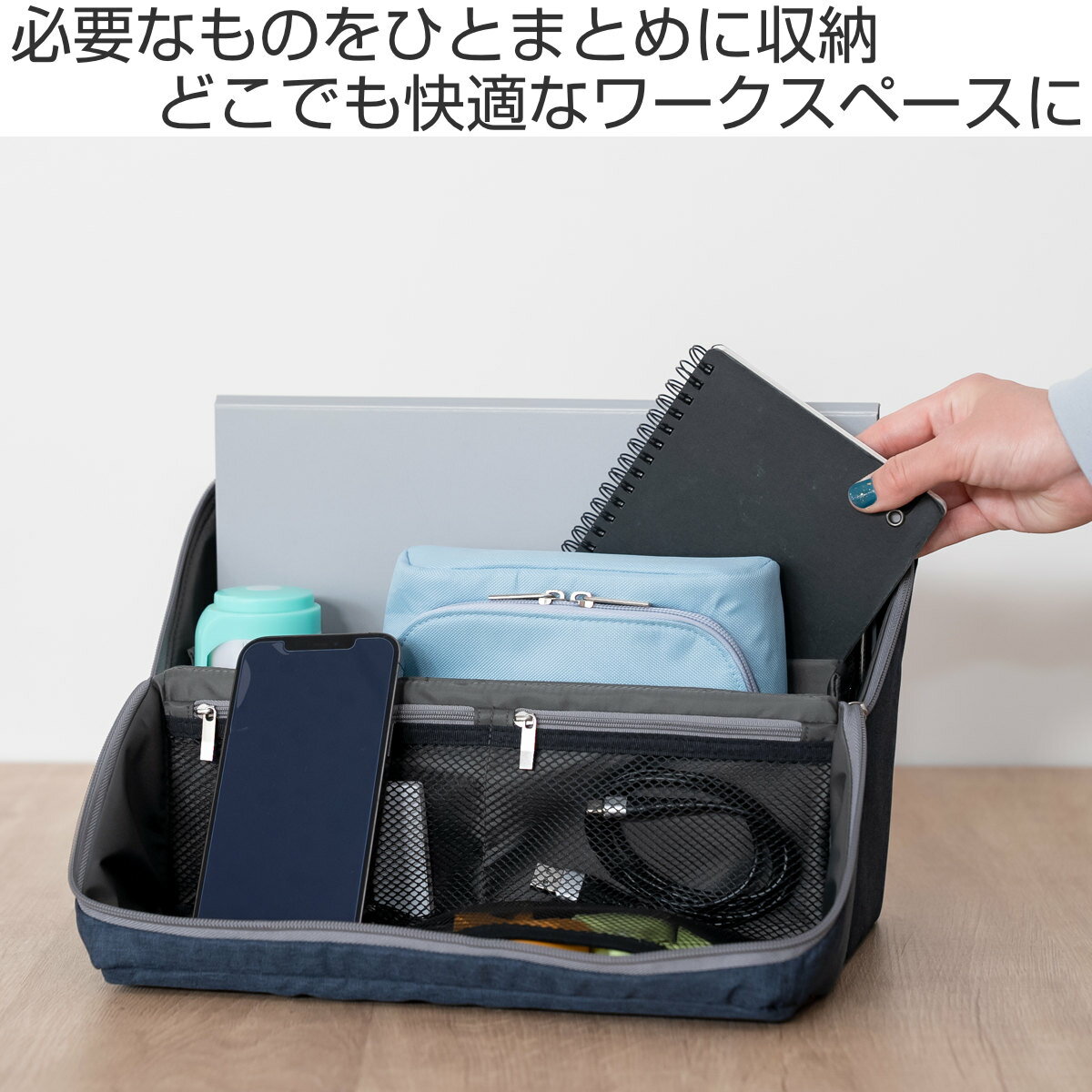 サイズ外寸:約 幅31.5×奥行13.5×高さ25(cm)内寸:約 幅30×奥行10.5×高さ21(cm)内容量1個材質ポリエステル・PP種類グレー、ネイビー生産国中国製区分返品・キャンセル区分(小型商品)ギフトラッピングページを見るフリーアドレス バッグ ユートリム スマ・スタ A4 ボックスおすすめポイントサッと開いてどこでもワークスペースに仕事に必要な物をまとめて入れて持ち運べるボックス型バッグです。ファスナーを開けて立てるだけで、快適なワークスペースができあがります。フリーアドレス&リモートワークにピッタリです。仕切り付きで整理整頓もバッチリ仕切りは面ファスナーによる着脱式で、好きな位置に動かせます。仕切りを外せばA4サイズに対応し、カタログや12インチ以下のノートPC・タブレットも入ります。使わない時も置き場所に困らないロッカーやキャビネット、サイドワゴンにすっぽり入るサイズです。ファイルみたいに使わない時は片づけて、必要な時だけ取り出せます。オフィスの文房具など共用備品の収納にも最適です。商品詳細見つけやすく取り出しもスムーズ開いたままで自立し、大きく開くので中身がひと目で確認でき、取り出しもスムーズです。安定感抜群の幅広マチファスナーを開けて折り返します。安定感抜群の幅広マチにより自立します。動画視聴に便利なスマホスタンド折り返した部分にスマートフォンやタブレットを立て掛けることができます。作業しながら画面を確認できるので、オンライン会議や動画学習にも活用できます。抜群の収納力と優れた機能性見た目以上の収納力で機能性にも優れています。小物ポケットは中の収納物が一目でわかるメッシュ素材です。整理しやすく、収納した持ち物を把握しやすい設計です。荷物も移動も多い方におすすめ持ち手付きで、移動時もサッとまとめてスマートに移動できます。ビジネスでもプライぺートでも幅広く使っていただけます。カラーサイズシリーズ紹介コンパクトに持ち運びたい方にモバイルサイズ化粧品や携帯ゲームの収納にA5サイズタブレットや出張セットの収納にA4サイズノートPCやカタログの収納にA4ボックス関連キーワード:utlim ミーティングバッグ 収納ボックス 収納バッグ ステーショナリー ペンケース ペン入れ ボールペン入れ 文房具入れ スマホスタンド 布製 勉強 出張 移動 旅行 トラベルポーチ 便利 仕事 学校 GIGAスクール 社会人 布地 男性 女性 レディース メンズ 大学生 収納力 オフィス ギフト 贈り物 プレゼント 立つ まとめる リビング学習 オンライン授業 動画学習 在宅 コワーキングスペース コスメ収納 カジュアル 自立 シンプル デスク 整理整頓 充電器 ケーブル 社内移動 多機能 グレー ネイビー LH10433 LH10268 関連商品はこちらユートリム スマ・スタ ワイド A4 立つバッ3,980円ユートリム スマ・スタ ワイド モバイル 立つ2,380円ユートリム スマ・スタ ワイド A5 立つバッ3,080円立つバッグインバッグ モバイルサイズ スマ・ス2,980円バッグインバッグ ユートリム スマスタ ワイド2,580円立つバッグインバッグ タブレットサイズ スマ・3,980円キャビネットバッグ A4ノートPC対応 ユート2,980円インナーバッグ ユートリム ブリッジ A4 15,480円インナーバッグ ユートリム ブリッジ ライト 2,980円ワーキングバッグ Worker bag トート4,070円フタ付キャビネットバッグ A4ノートPC対応 3,480円キャビネットバッグ タテ型 14インチPC対応2,980円