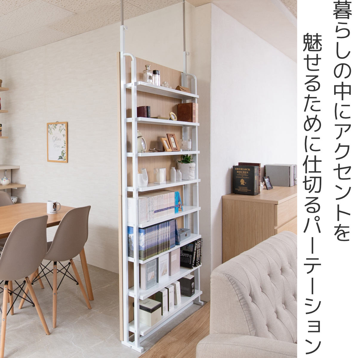 本棚 突っ張り 幅90cm 8段 パーテーション 間仕切り マリンナチュラル 日本製 ( 衝立 ラック コミックラック マガジンラック DVDラック つっぱり式 パーティション 目隠し ついたて 仕切り おしゃれ 壁面ラック 壁 ディスプレイ ) 【39ショップ】