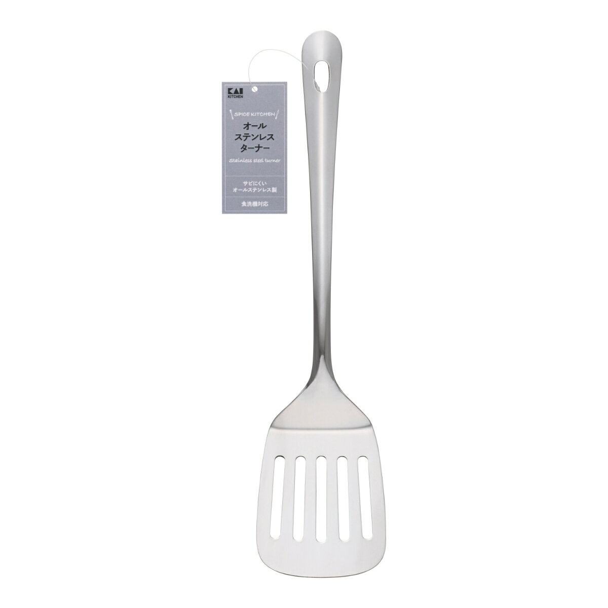 ターナー オールステンレス 食洗機対応 貝印 ( フライ返し 穴あきターナー ヘラ ビーター ステンレス製 穴開きターナー ステンレス製ターナー へら 盛り付け 一体成型 キッチンツール キッチン用品 おしゃれ )【39ショップ】