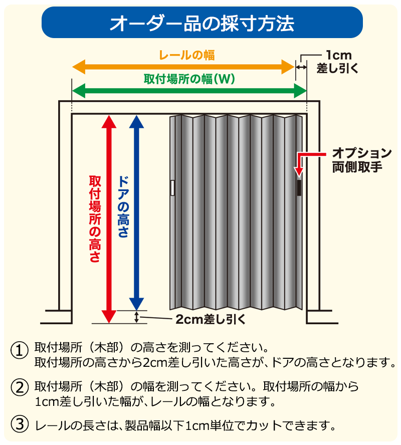 商品名ファブリックドア SV-2特長撥水加工されたアコーデオンドアソフトなファブリックアコーディオンカーテンは、生地に撥水加工をしてますのでお手入れが簡単です。さらに、大型取手は握りやすく便利です。収納スペースの拡大や目隠し、スペースの間仕切りにお使いいただけます。備考オーダー品は、国内で加工しており6〜10日出荷となります。既製品はメーカー在庫があれば2〜4日出荷となります。返品原則としてお受けできません。窓周り関連キワード:ファブリックドア SV-2 パネルドア アコーディオン 蛇腹 間仕切り 木目調ドア 簡易ドア 省エネ エコ 節電 収納スペース デッドスペース DIY DIY 簡単施工 レール パネル フルネス 株式会社フルネス アコーディオンドア SV2ファブリックドア SV-2撥水加工されたアコーデオンドアソフトなファブリックアコーディオンカーテンは、生地に撥水加工をしてますのでお手入れが簡単です。さらに、大型取手は握りやすく便利です。収納スペースの拡大や目隠し、スペースの間仕切りにお使いいただけます。ファブリックドア SV-2 規格サイズ 価格表 (税別・送料無料)サイズ(cm)価格(税抜)100×174cm119008700円規格品はクロスグレイとクロスベージュの2色のみです。オーダー品と規格品の併用はマグネットの位置が異なるため、ご遠慮ください。