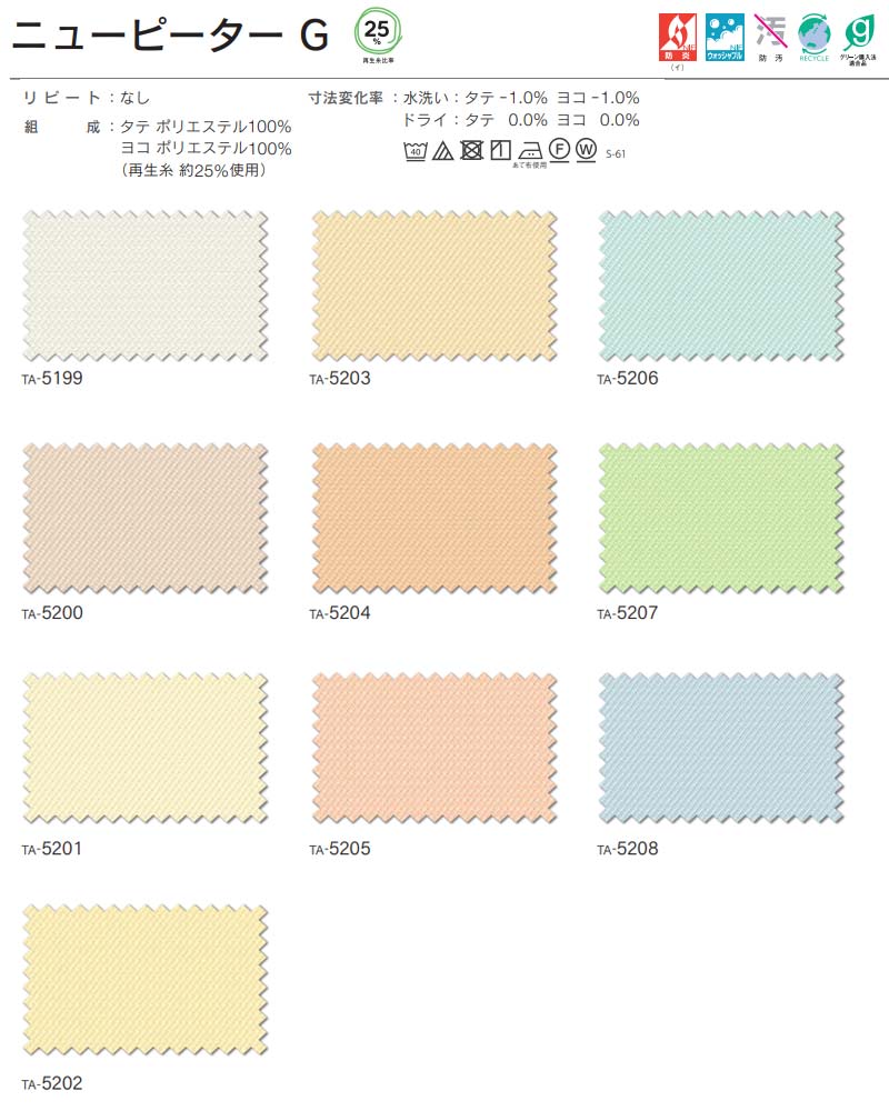 コントラクトカーテン シンコール TACT ベーシックドレープ約1.5倍ヒダ/ニューピーター G TA5199〜5208 幅400x高さ240cm迄