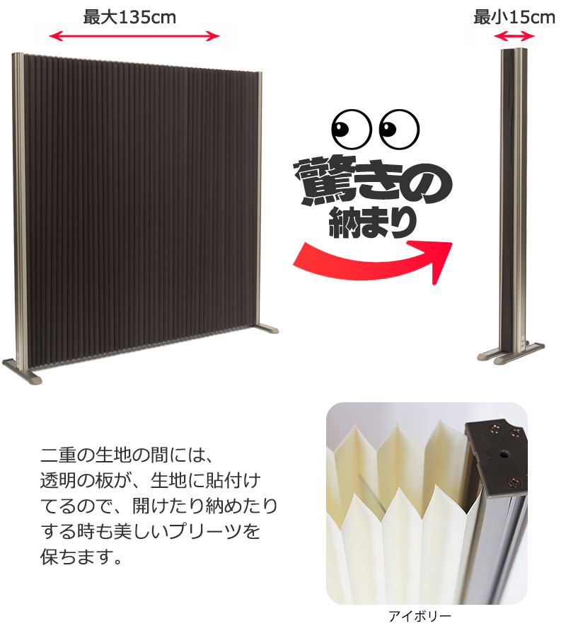 プリーツパーテーション 防炎 消臭 約15cmに畳めてコンパクトに収納 プリーツ衝立 HSプリティア 間仕切り ●幅135x高さ160cm