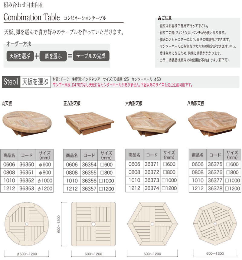 高級ガーデニング商品をお届けします。ガーデニング 我が家の素敵なガーデン&インテリア JABIS Garden+Interiorコンビネーションテーブル 丸天板1212 (36353)ガーデン&インテリアJARBIS Garden+Intrior建物と違和感がない木製物置や屋外でも使用可能なチークのファニチャー、緑豊かに演出できるガーデンアーチ、憧れのアイアンフェンスなど多種にわたる商品構成。なかなか店頭では見ることの出来ないワンランク上のお洒落なガーデンアイテムをご紹介します。「もっとお庭をお洒落にしたい」「もっと個性的な商品はないのかな」「もっとイメージ的に素敵な何かを置きたいの」「もっとガーデングッズはあってもいいのに」といった全国のガーデニングファンの熱い期待にお応えし、個性あるもの、よそでは手に入らないもの、本物志向の面白いものをお届けします。●コンビネーションテーブル 丸天板0606 (36350) → 28800円●コンビネーションテーブル 丸天板0808 (36351) → 37400円●コンビネーションテーブル 丸天板1010 (36352) → 55300円●コンビネーションテーブル 丸天板1212 (36353) → 67800円在庫状況や返品などについてメーカー直送品のため、メーカーに在庫がなくなり次第、販売終了やお待ちいただく事があります。購入前に、当店に在庫確認をしていただくと、確実な状況をお知らせします。い草ラグ・竹ラグなどは、天然素材の為、色ムラや不揃いなどがあります。このような性質上に関する返品はお受けできませんのでご了承ください。送料について北海道・九州・四国・沖縄・離島は別途追加送料あります。