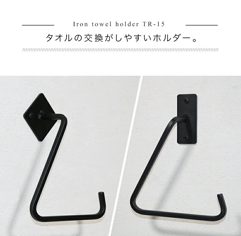 タオルハンガー アイアン TR-15 タオル掛け タオル 収納 アンティーク おしゃれ キッチン 洗面所 壁 トイレ ハンガートイレ タオルホルダー 業務用 便所 簡単 設置 取付け